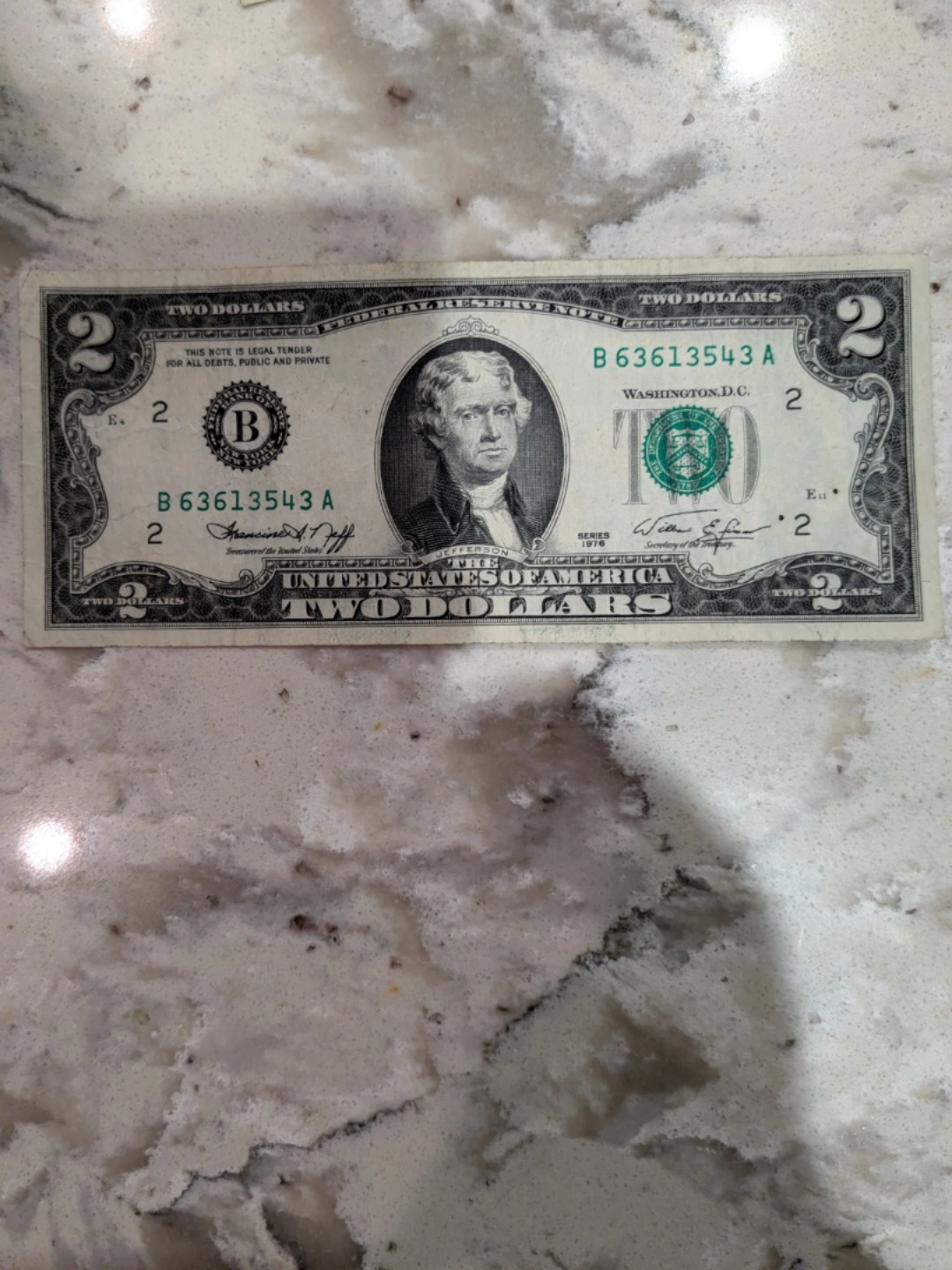 Rare vintage Two dollar bill. Series 1976 Good condition. Collectible.