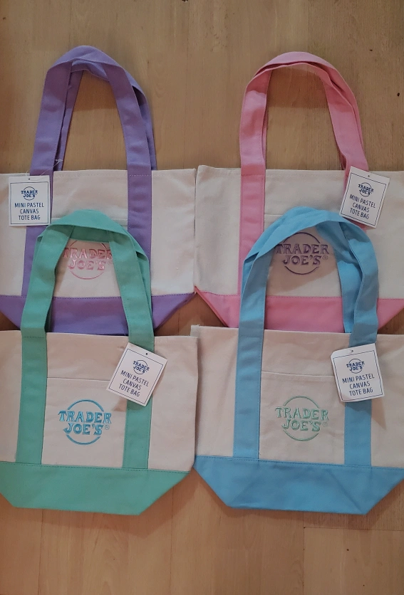 Brand New 4 Trader Joe's pastel mini totes. ISO the other 4 color of the trader Joe's mini tote. willing to trade 4 pastel colors for the other 4 color totes. Has to be Brand New with tags. see pictures.
