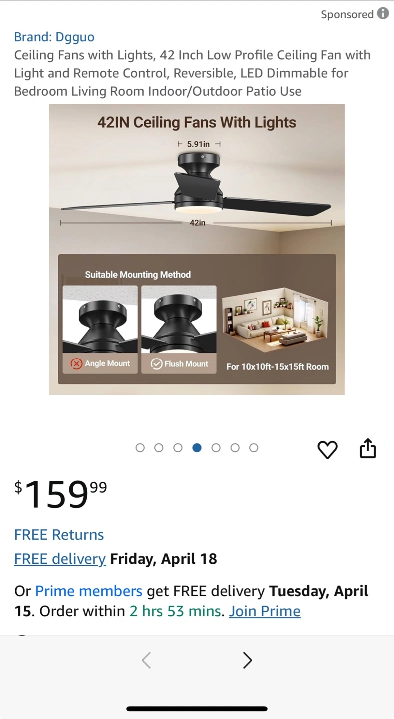 Ceiling Fans with Lights, 42 Inch Low Profile Ceiling Fan with Light and Remote Control, Reversible, LED Dimmable for Bedroom Living Room Indoor/Outdoor Patio Use(brand new in box)