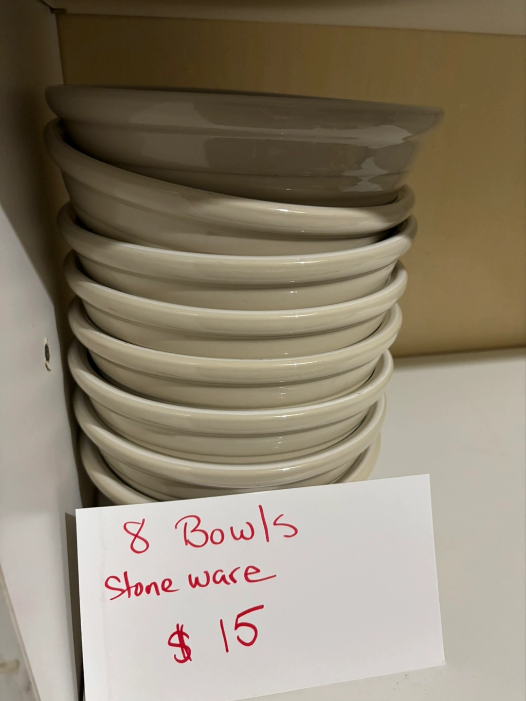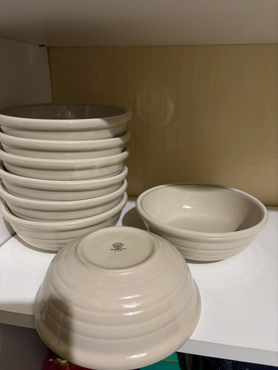 91Set of eight off-white stoneware bowls. Medium size, ideal for cereal, soup or snacks. Vintage.