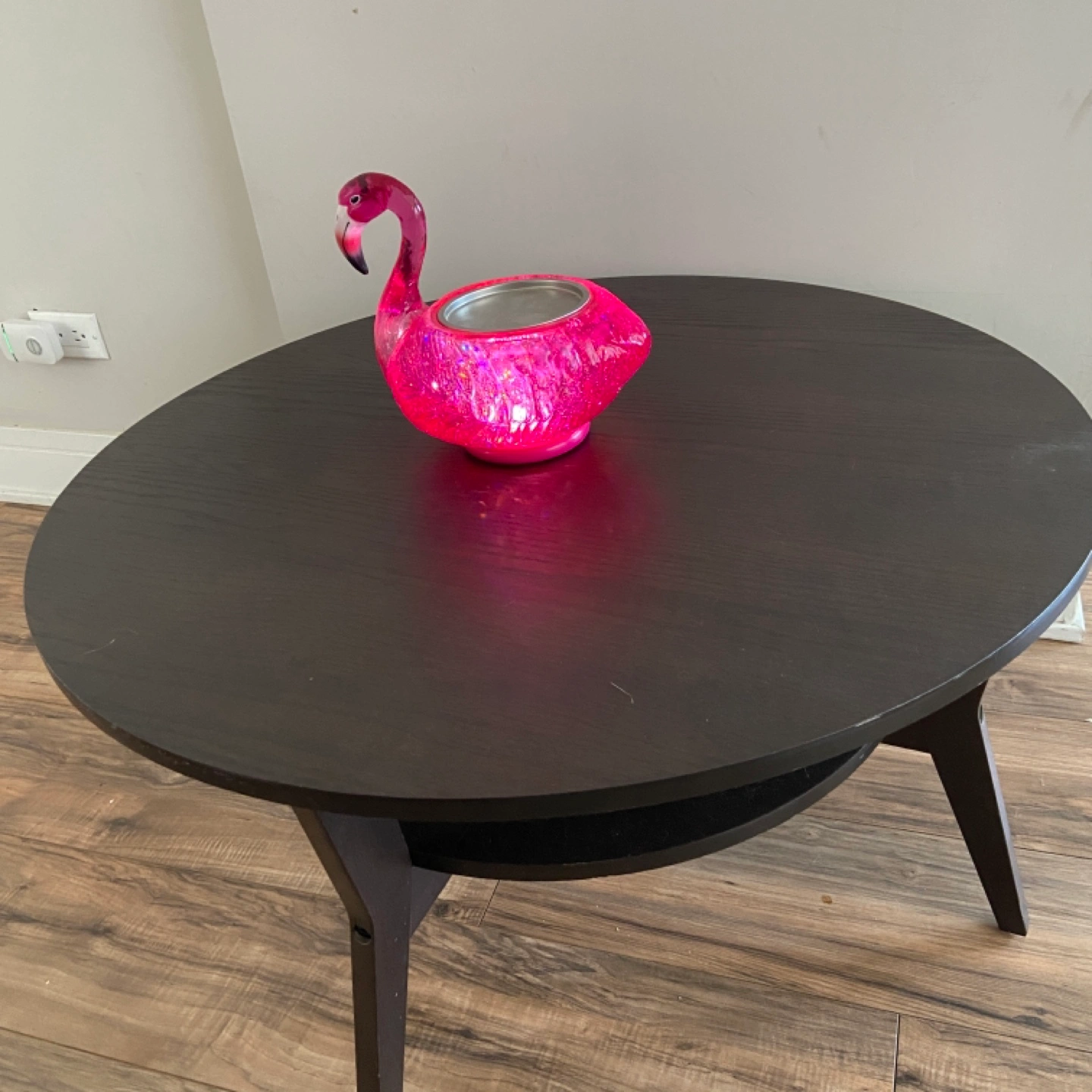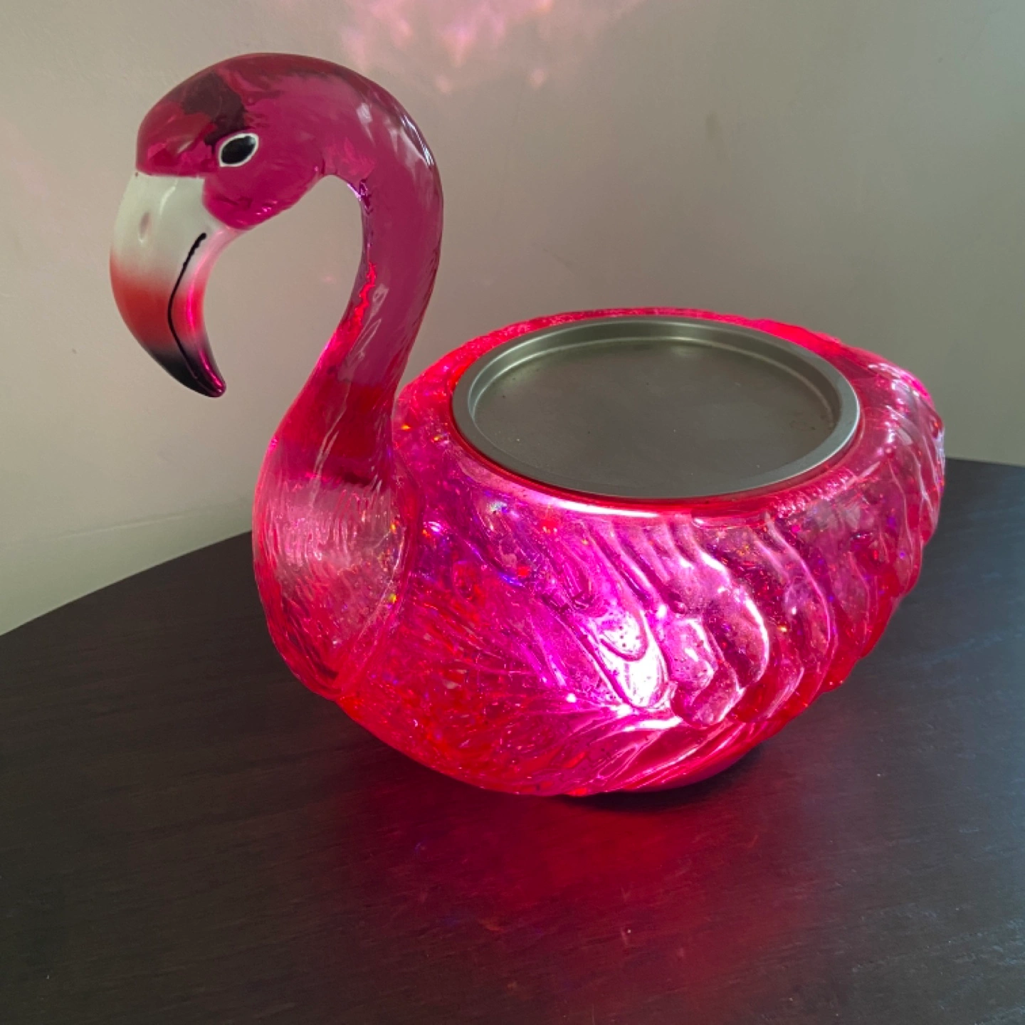 Bath and Body works Pink flamingo shaped large candle holder. Glitter accents. Turns on/off. Adds a fun touch to any room.