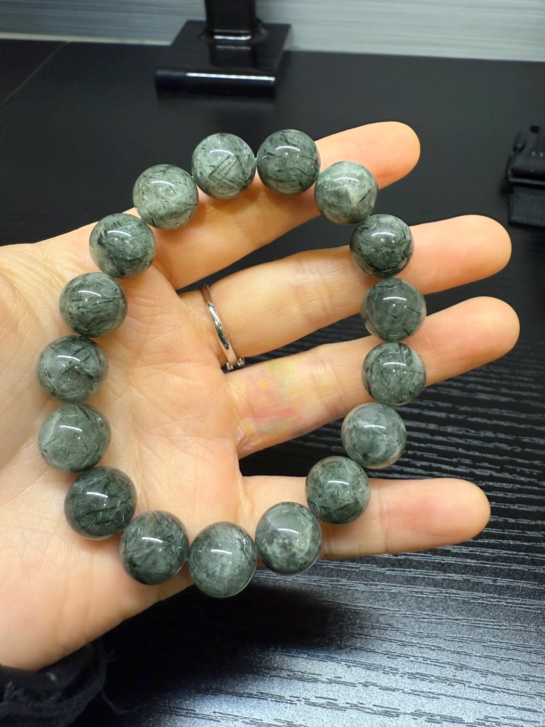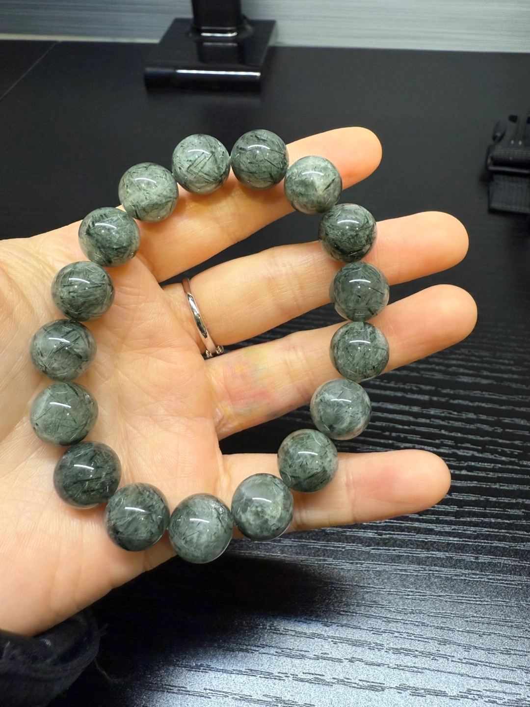 65Beautiful bracelet. Round beads. Green color. Natural crystal . Unique style. Perfect gift.