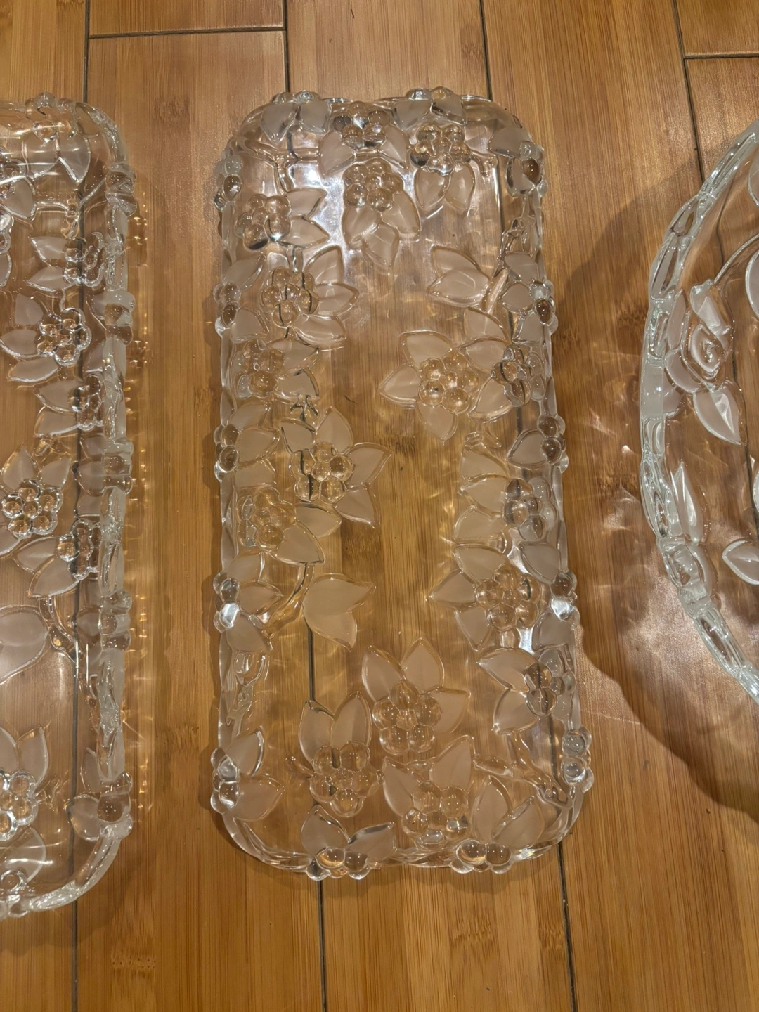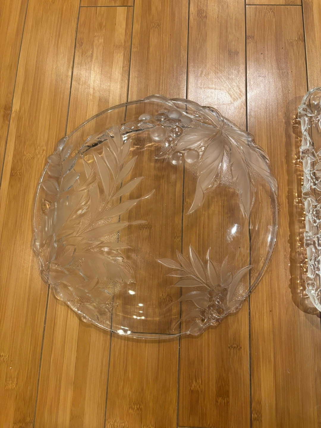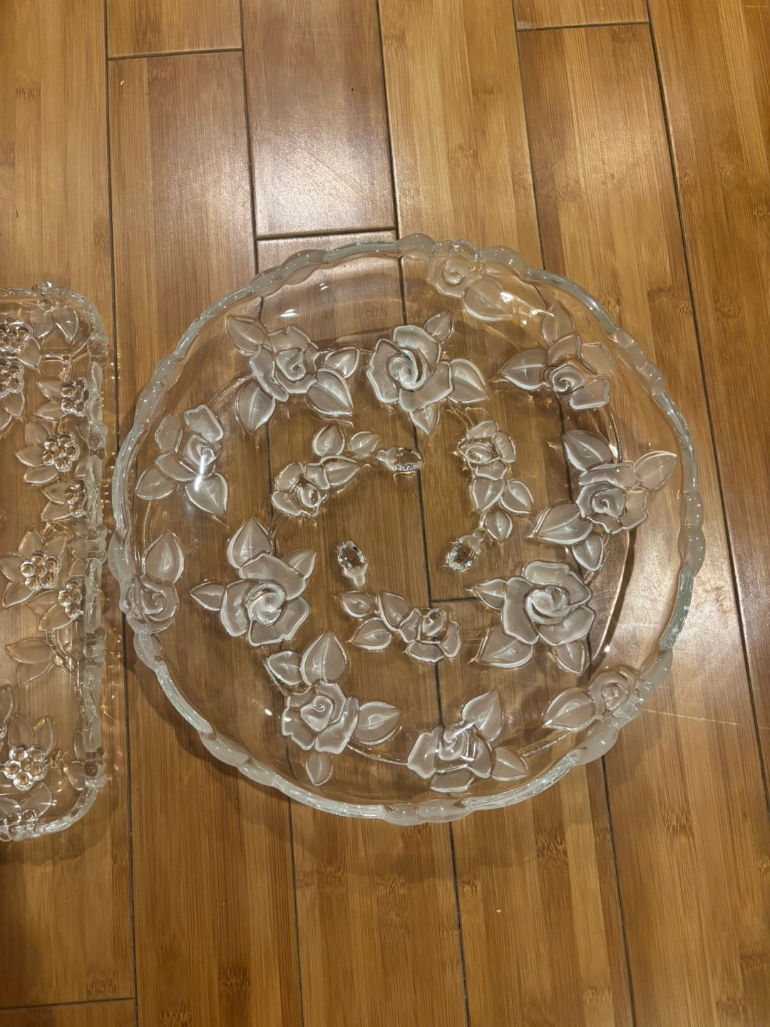 Crystal Serving Platter Set with Floral Design