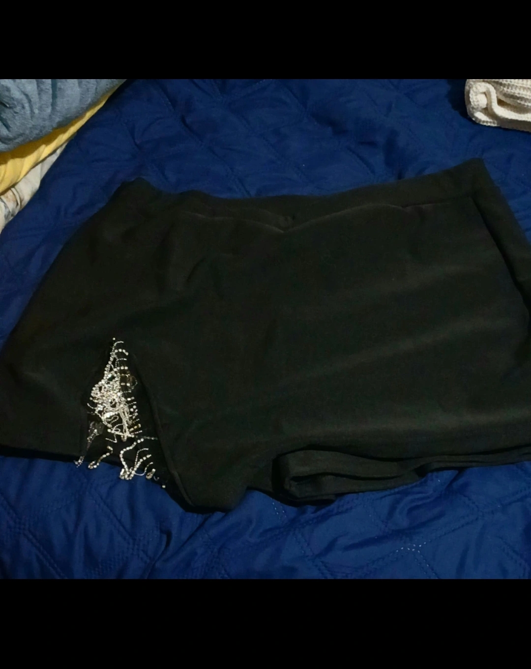 1000+Black skirt. Rhinestone embellishment on one side. AQ Sport brand.