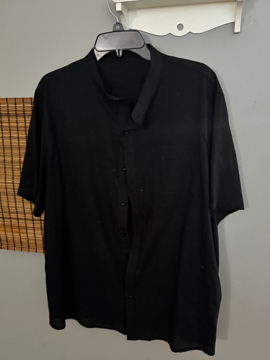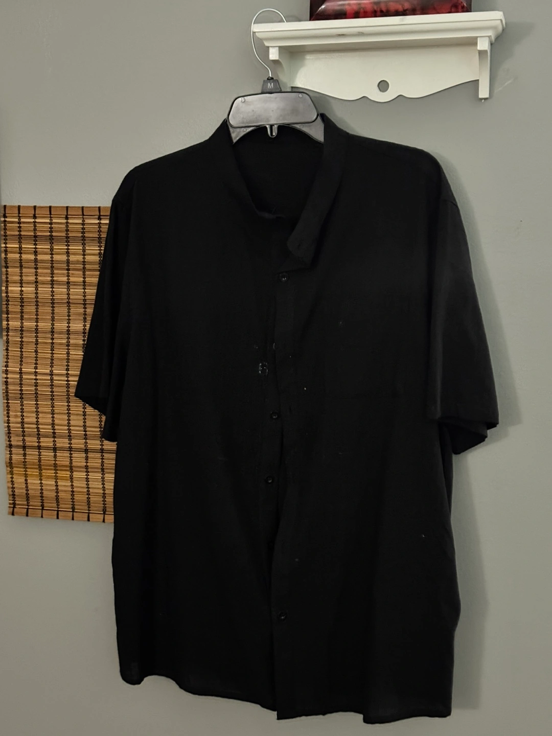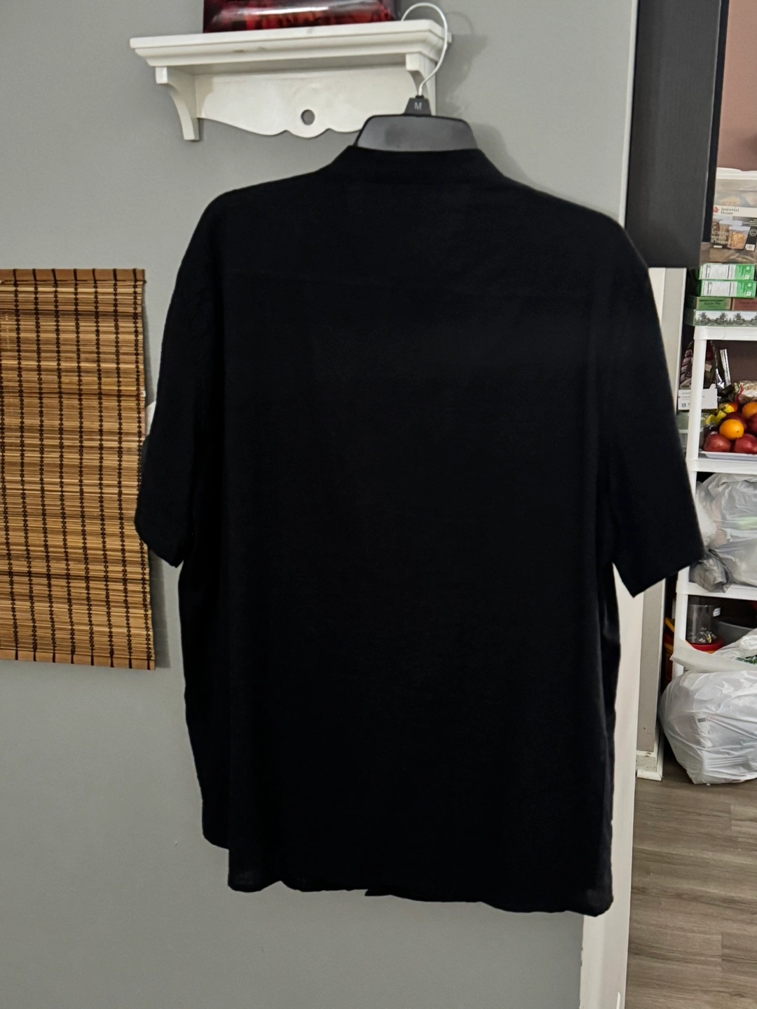 103Men's short sleeve button-down shirt. Black color. Relaxed fit. One chest pocket. Great for casual wear. Available for local pickup by Schaumburg and Barrington Road in Schaumburg IL 60194 or shipping to your doorstep for one low price with tracking included for free. Comes from a virus free, smoke free and pet free home.