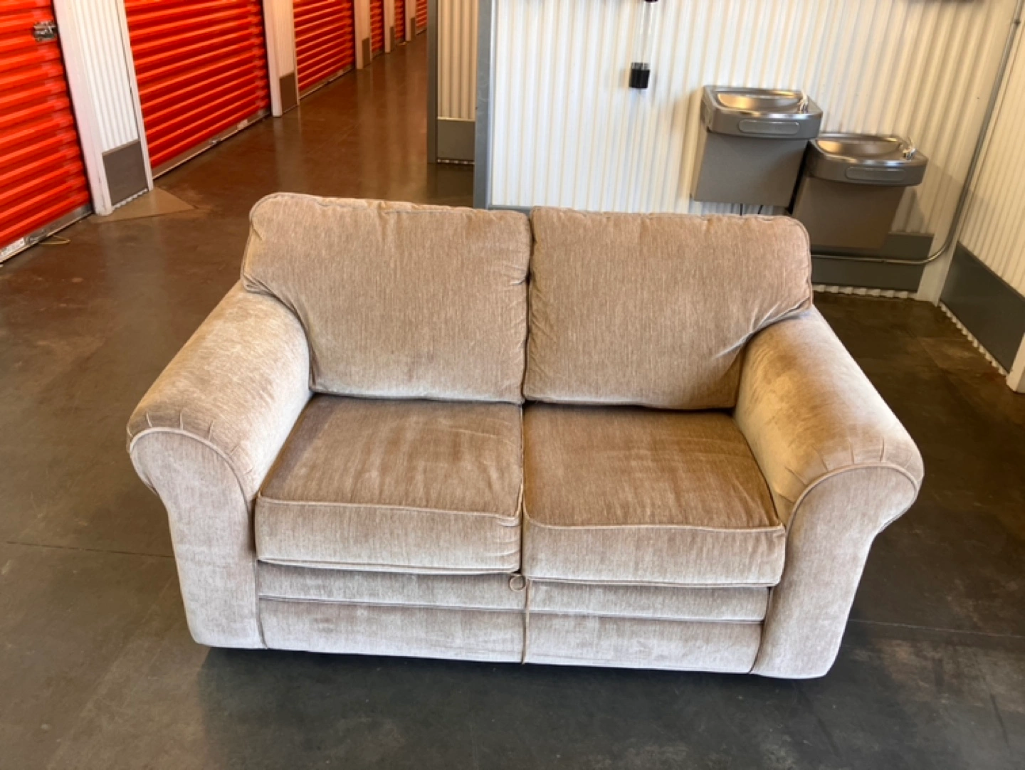Klaussner loveseat. Beige fabric. Pull-out sleeper. Like brand new. Pull-out has never been used.