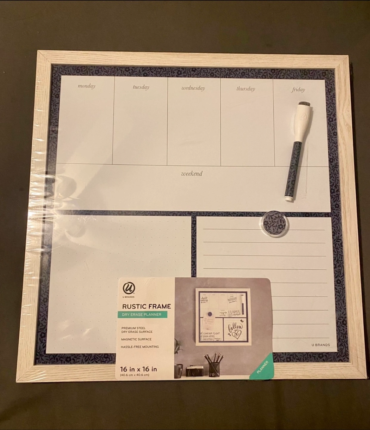 UBrands Rustic Magnetic Surface Weekly Dry Erase Planner Board