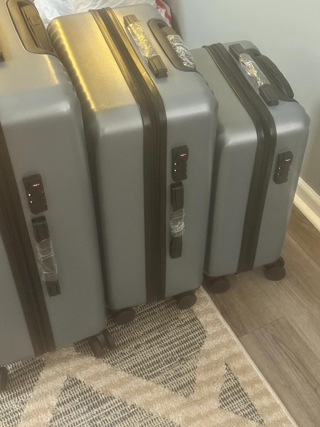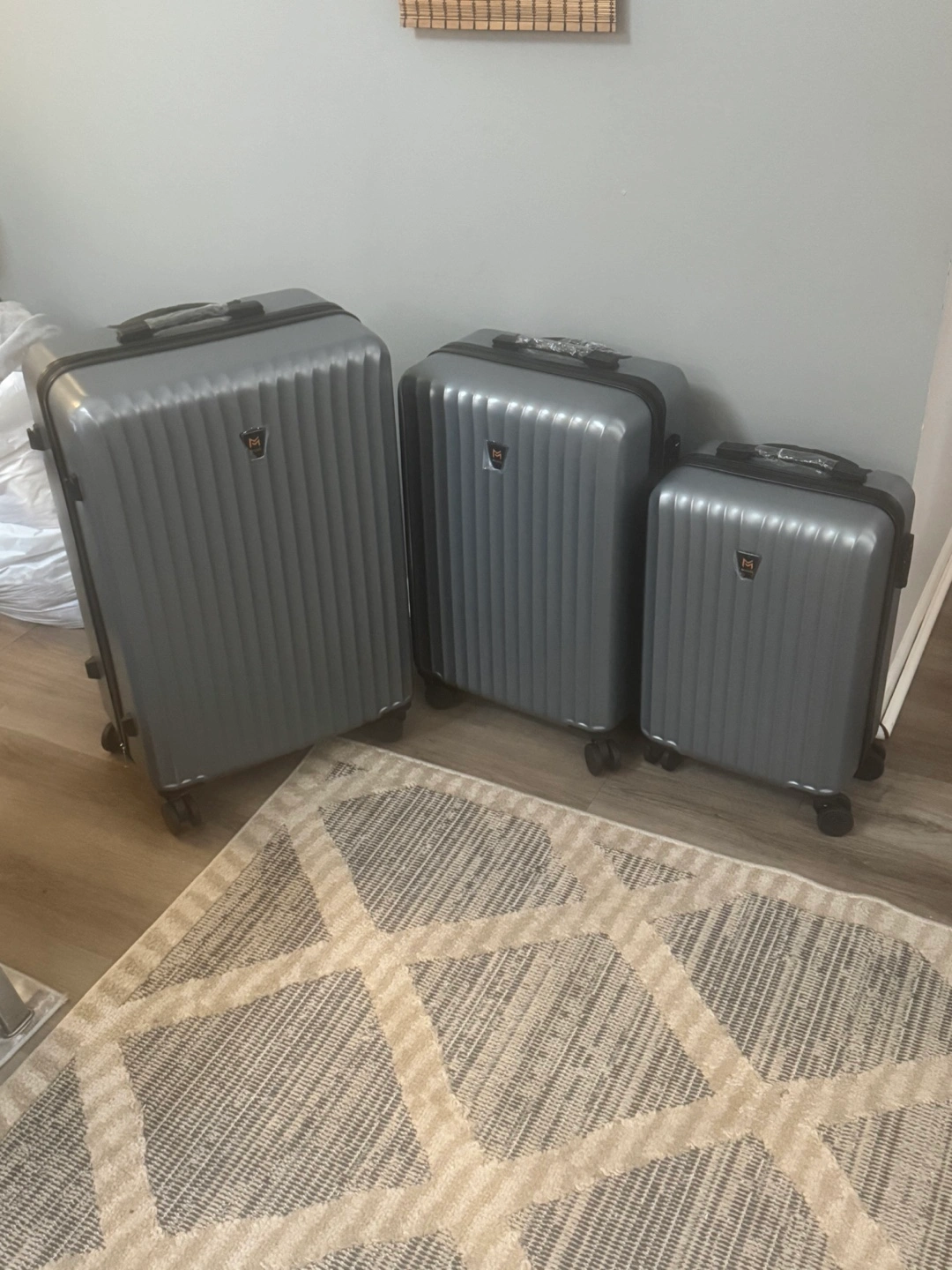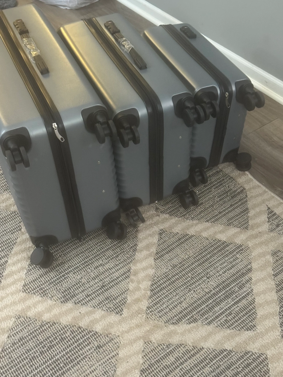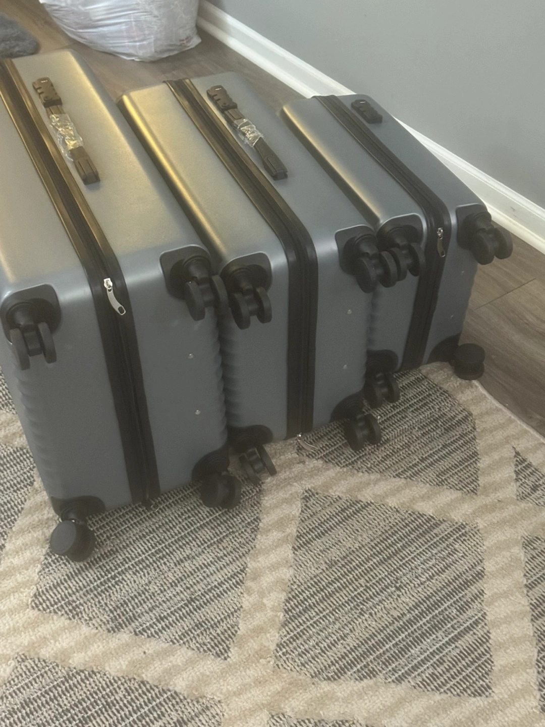 103Gray polycarbonate luggage. Spinner wheels. TSA approved locks. Lightweight and durable. Set includes three suitcases, various sizes 28” 24” 20” Available for local pickup by Schaumburg and Barrington Road in Schaumburg IL 60194 or shipping to your doorstep for one low price with tracking included for free. Comes from a virus free, smoke free and pet free home.