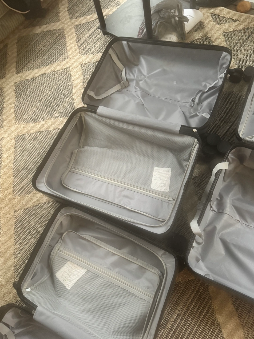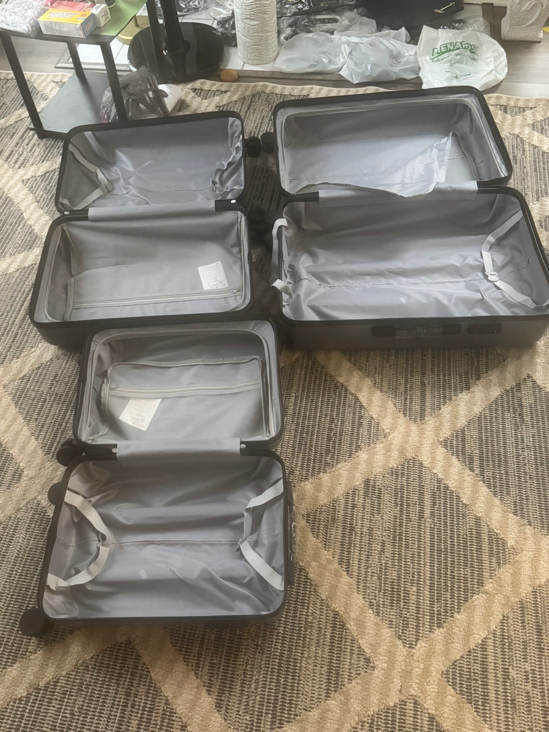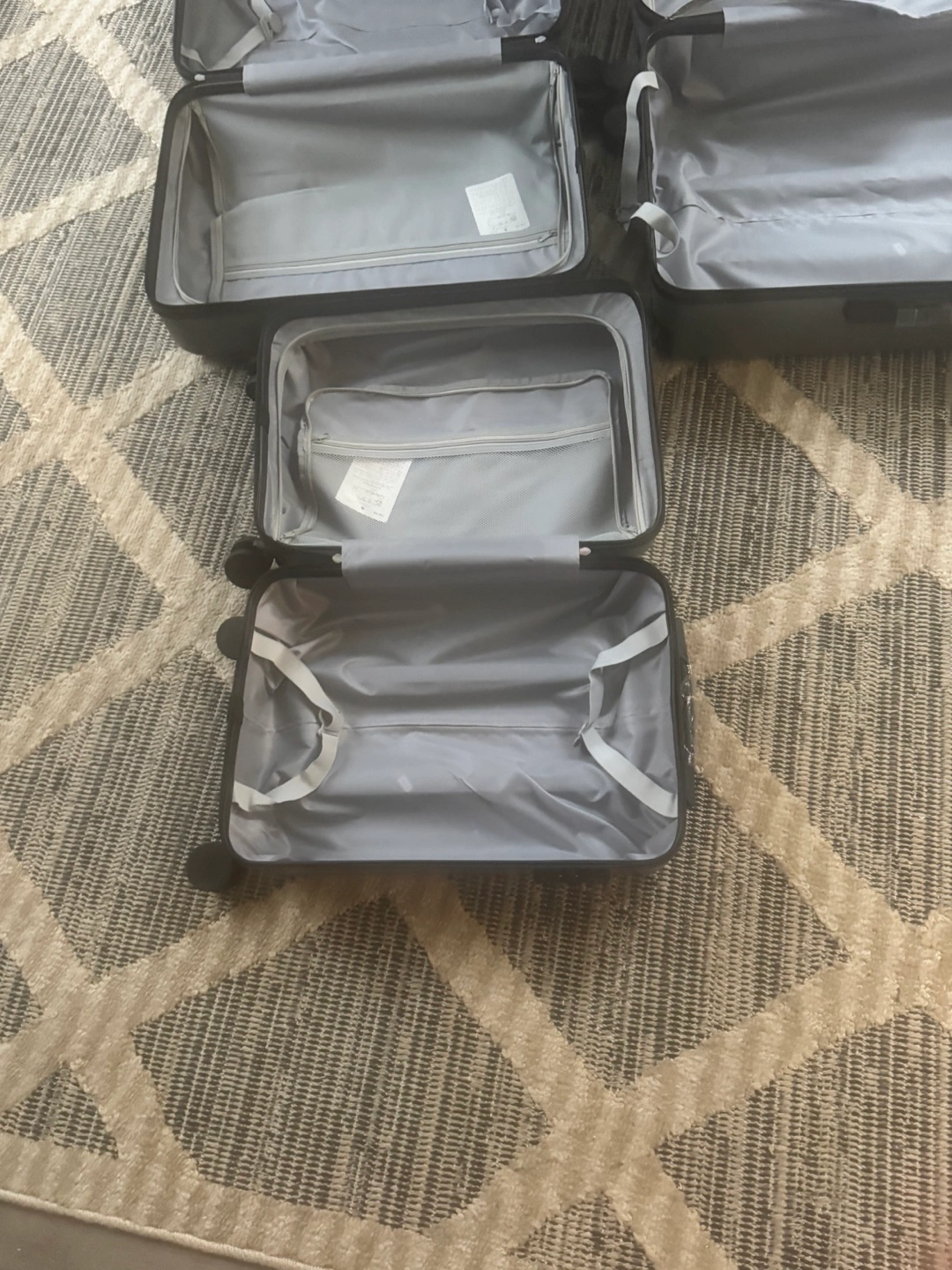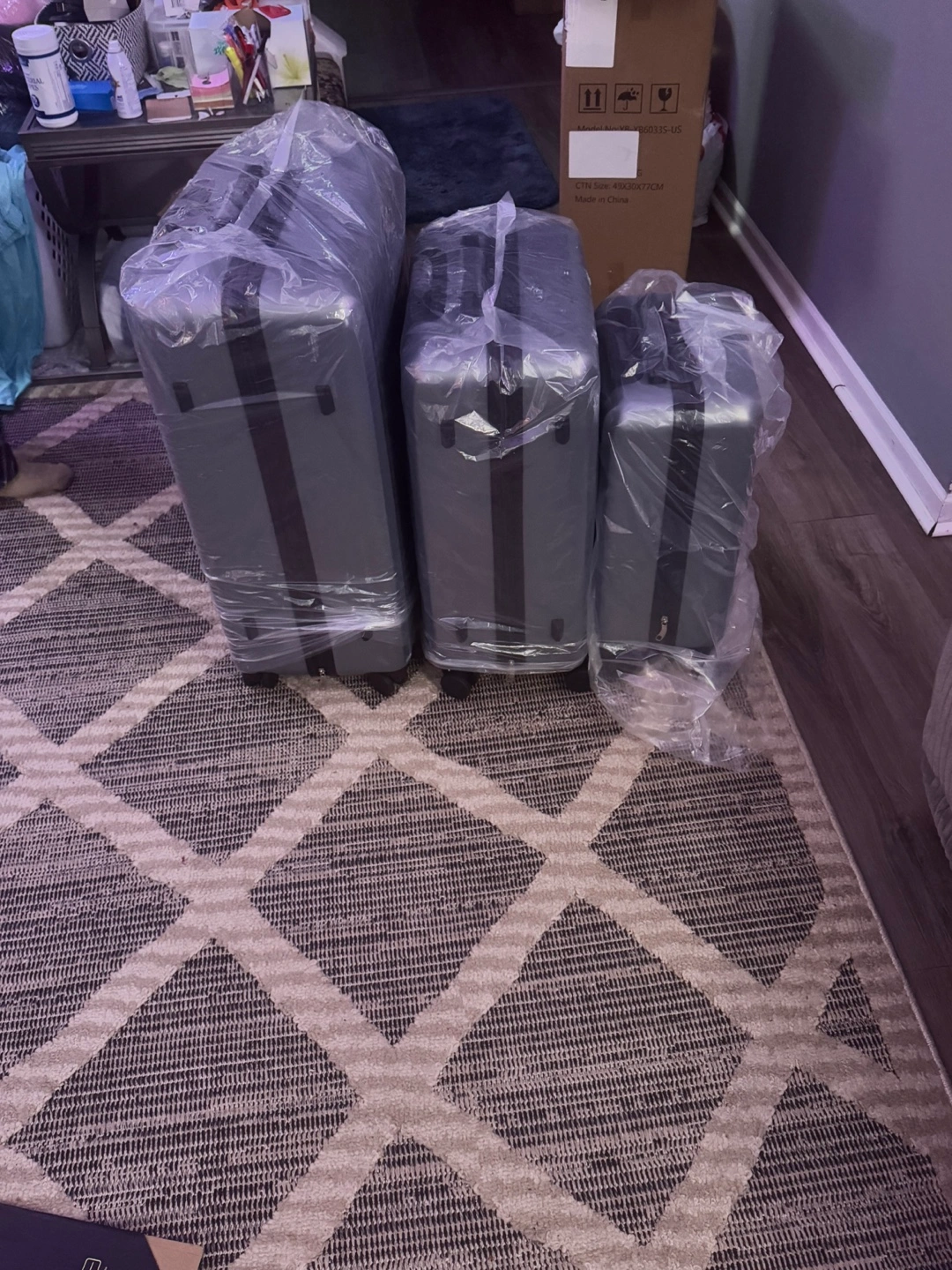 103Gray polycarbonate luggage. Spinner wheels. TSA approved locks. Lightweight and durable. Set includes three suitcases, various sizes 28” 24” 20” Available for local pickup by Schaumburg and Barrington Road in Schaumburg IL 60194 or shipping to your doorstep for one low price with tracking included for free. Comes from a virus free, smoke free and pet free home.