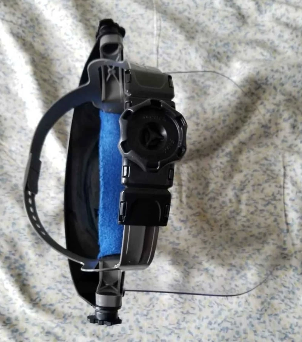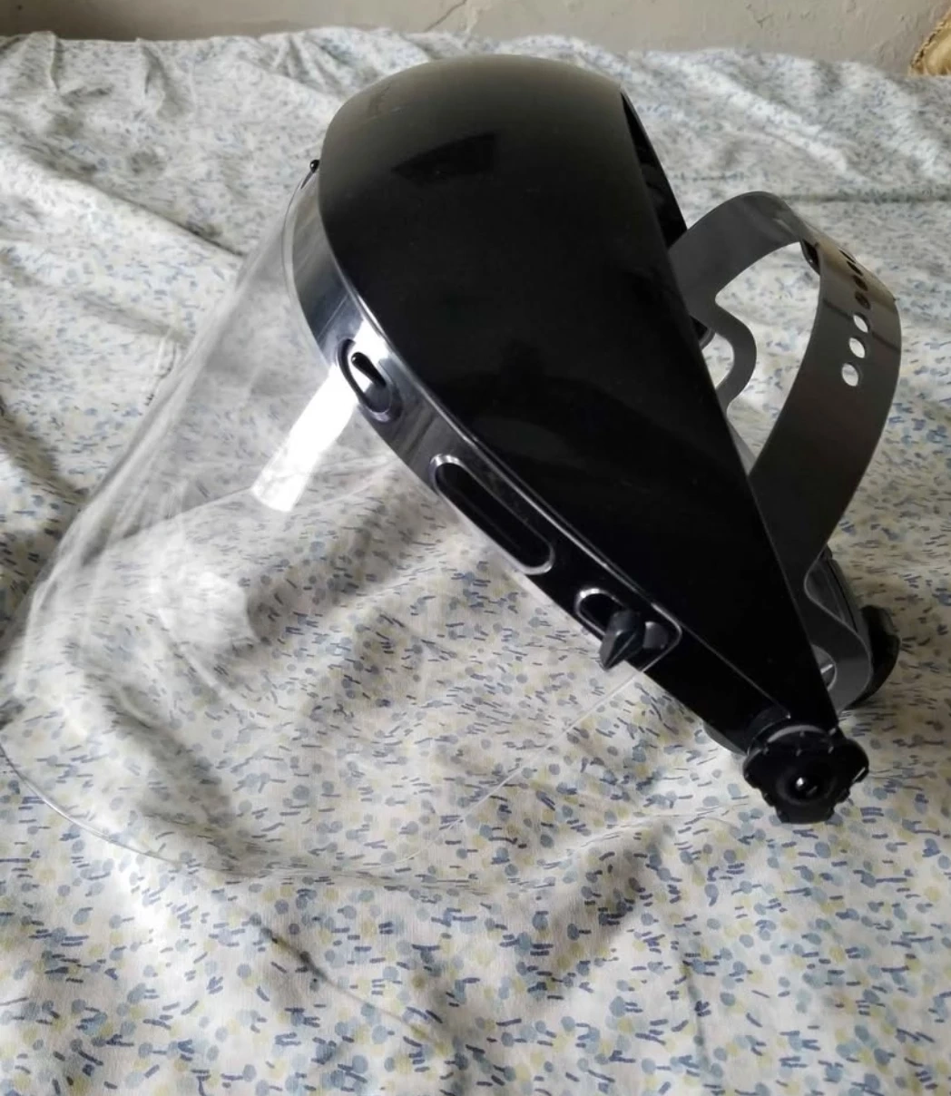 Protective face shield. Clear visor. Adjustable headband. Good for various uses.