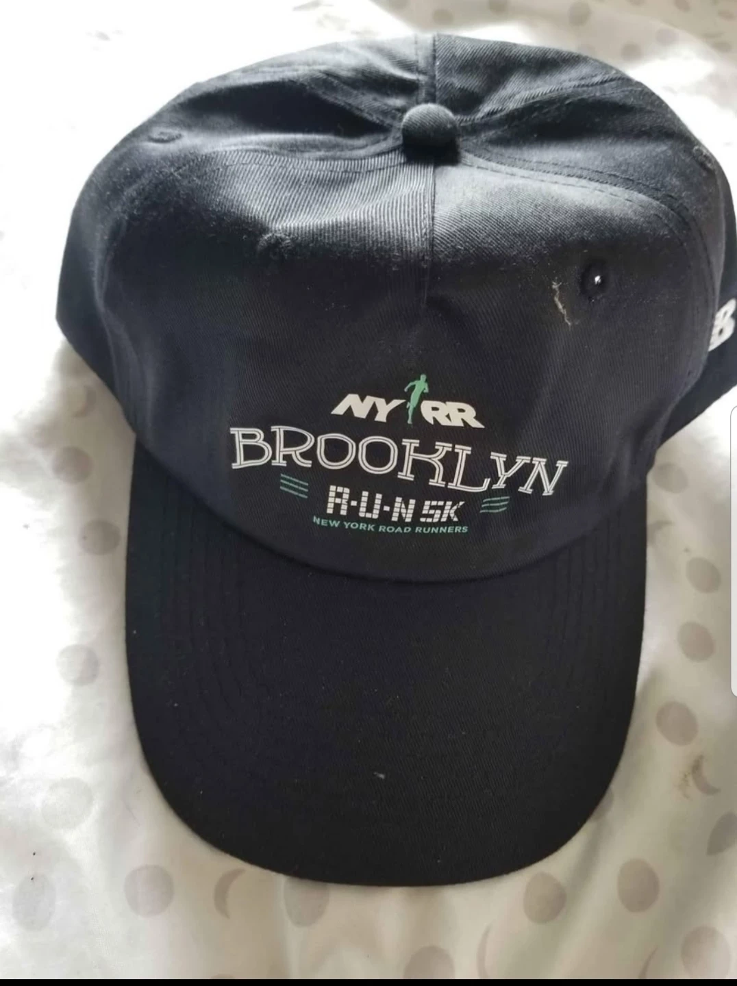 Black baseball cap. Features NYRR logo and Brooklyn Half branding. Adjustable back.