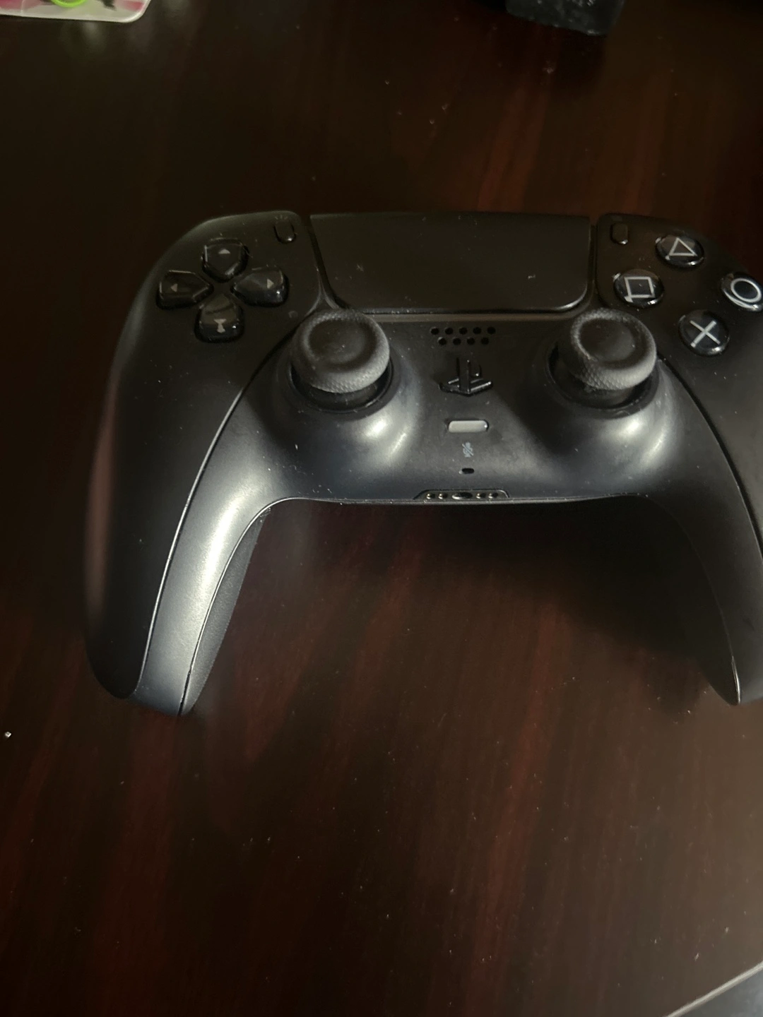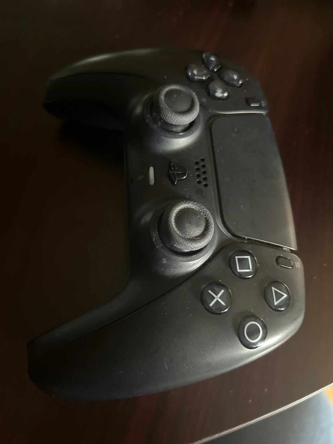 Black DualSense controller for Playstation 5. Used, good condition. Wireless functionality. Includes all buttons and joysticks.