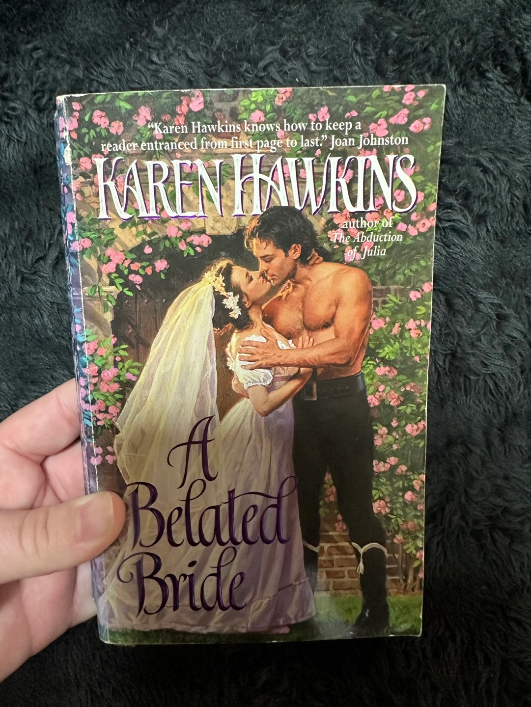 Paperback romance novel. A Belated Bride by Karen Hawkins. Good condition. Author of The Abduction of Julia.