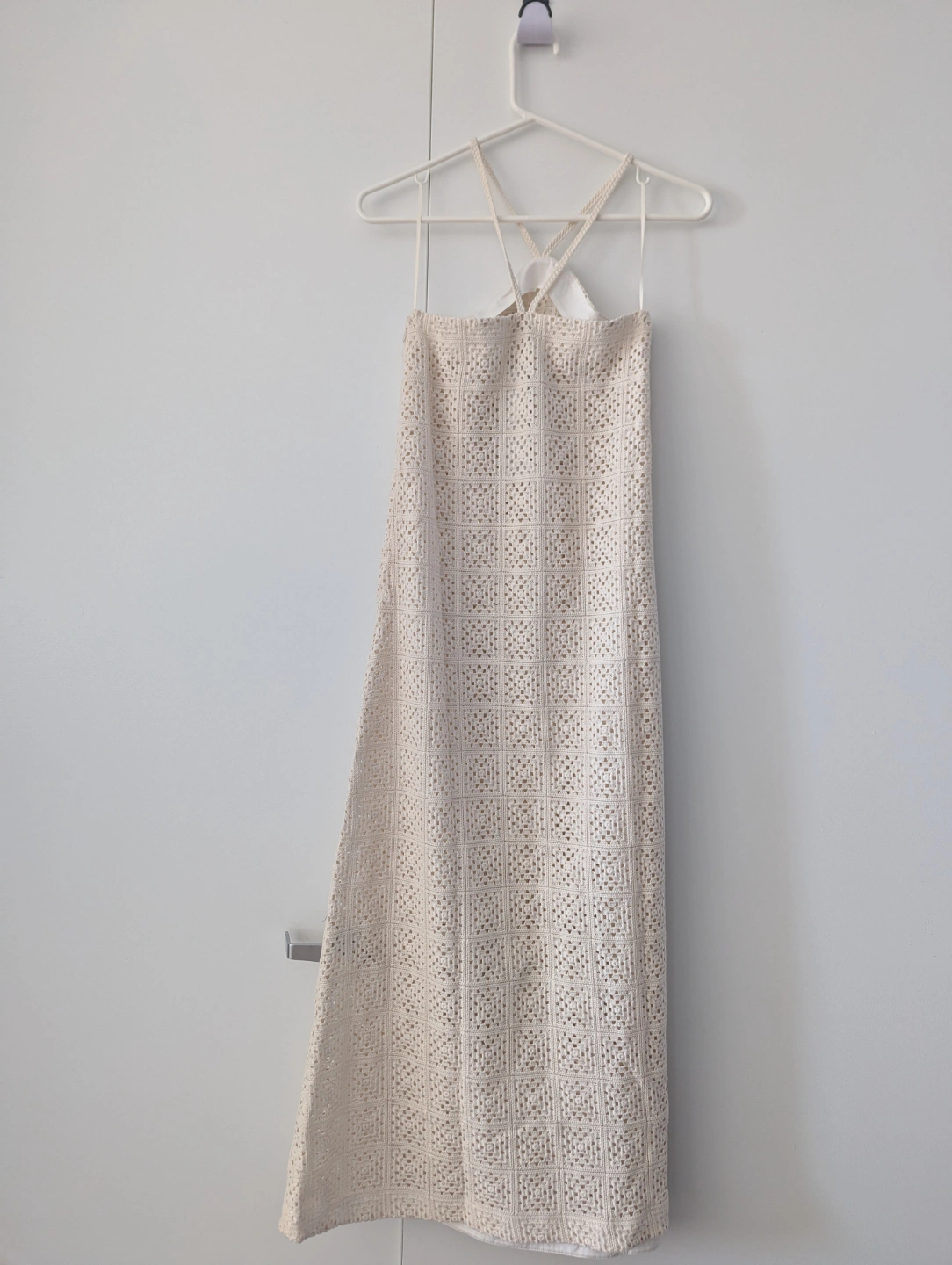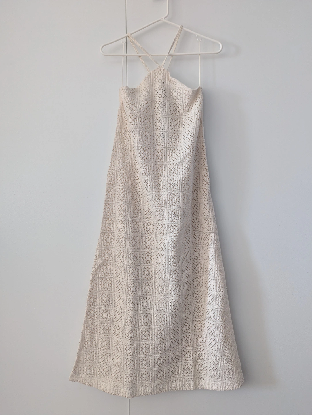 ✨NEW WITH TAGS✨ such a beautiful dress, unfortunately didn't fit me. product description from brand: The Amira Dress is made from a cotton blend, with a unique open knit pattern. Featuring a midi length, flattering halter neckline and braided trim straps. Wear as is or layer it over your bathing suit for a stylish beach cover.