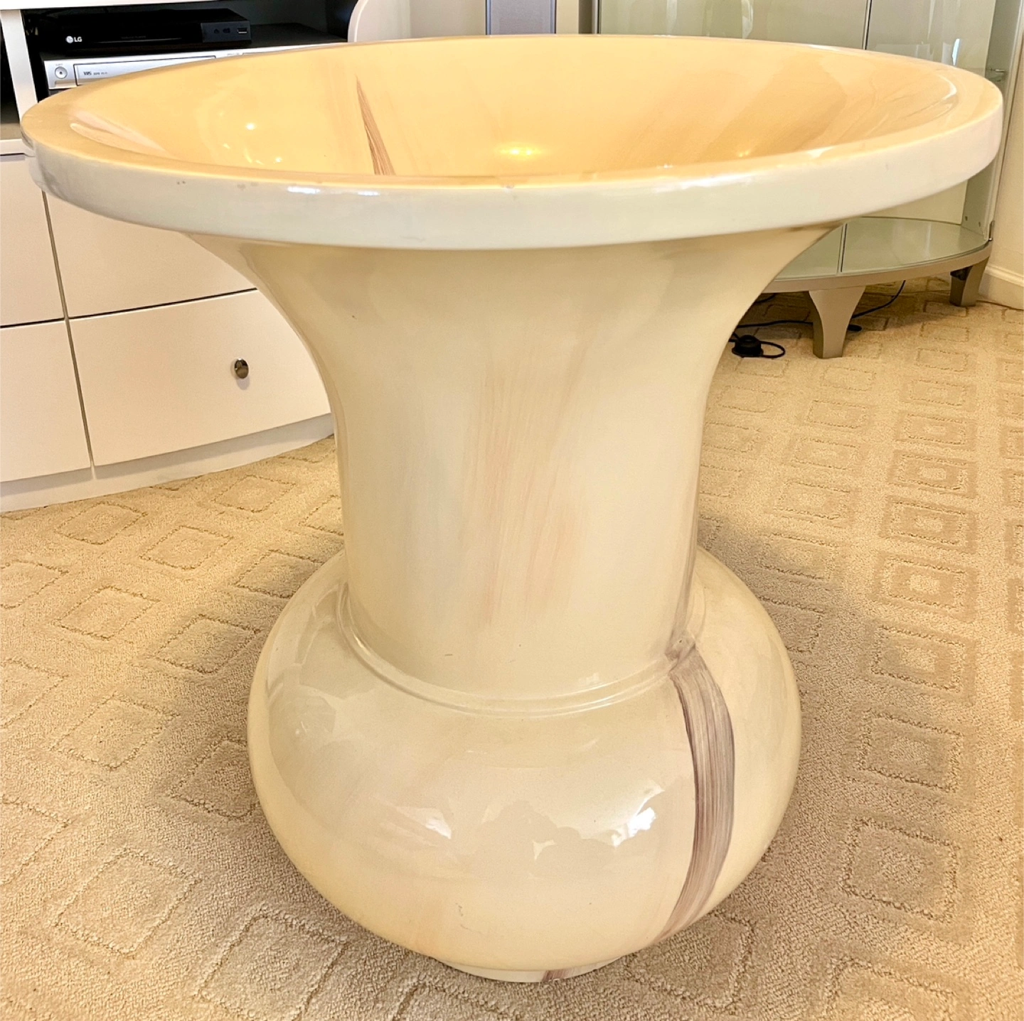 A striking and unusual centerpiece, this vase-inspired pedestal blends form and symbolism. Shaped like a traditional Chinese "ping" (瓶) bottle, it represents peace and safety — making it ideal for homes that value harmony and good Feng Shui. Its smooth, glossy surface and flowing, artistic lines also make it a beautiful art installation or conversation piece.