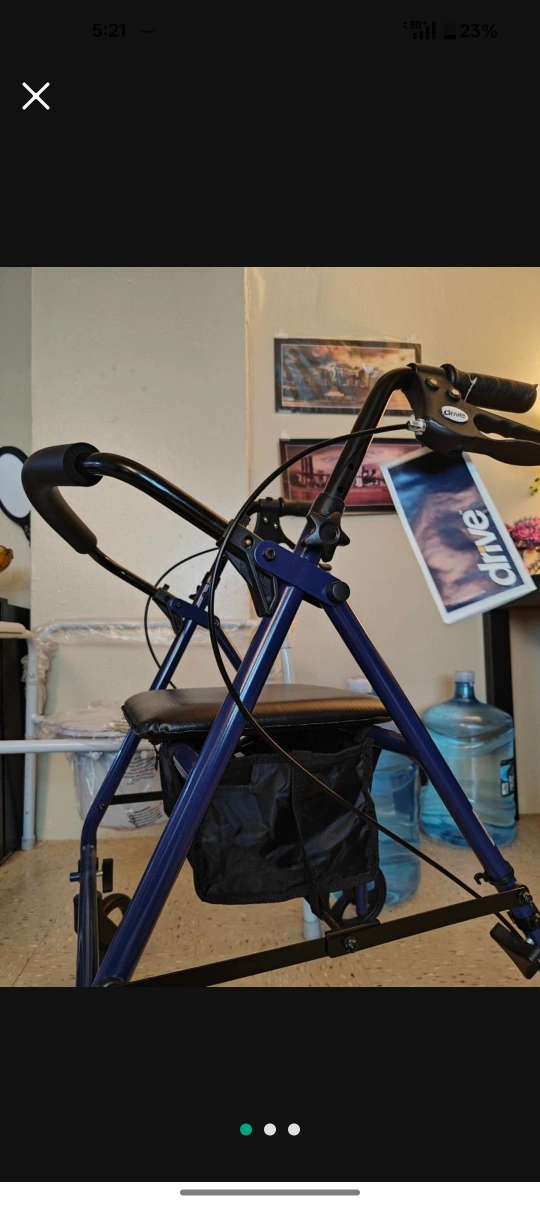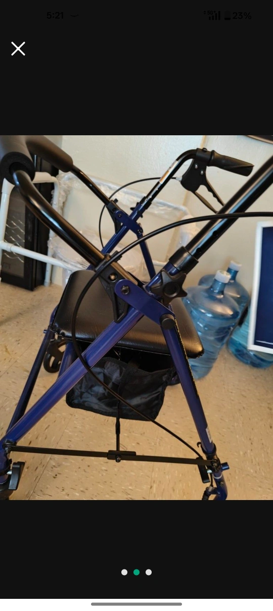 Durable rolling walker. Features a padded seat, convenient storage basket, and hand brakes. Lightweight aluminum frame. Great for added stability and support. Like new condition