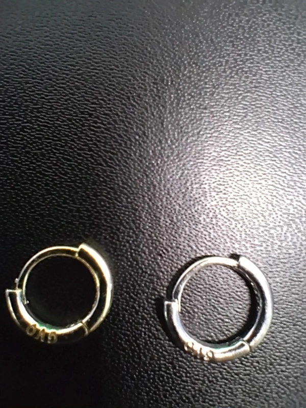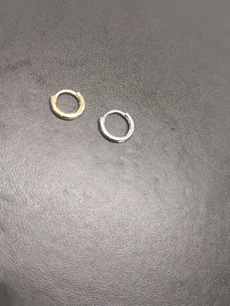 75Small huggie earrings. One gold, one silver. Minimalist style. Good for everyday wear.