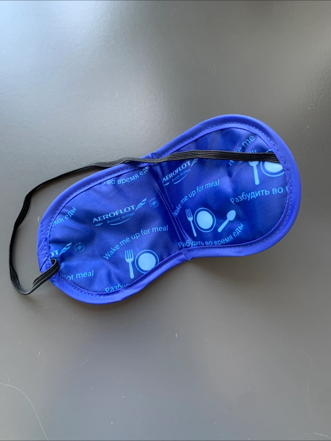 395Brand new Aeroflot sleep mask. Double-sided design. One side says Do Not Disturb, the other Wake Me Up For Meal. Blue trim. Perfect for travel.