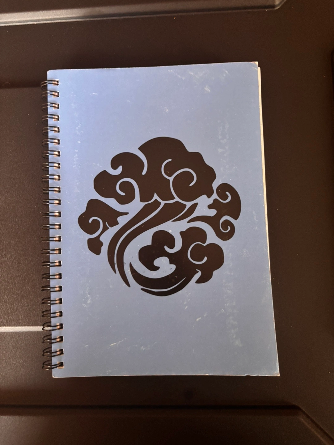 1000+Lightly used spiral notebook. Blank lined pages. Blue cover with black cloud design. Perfect for notes, sketches, or journaling.