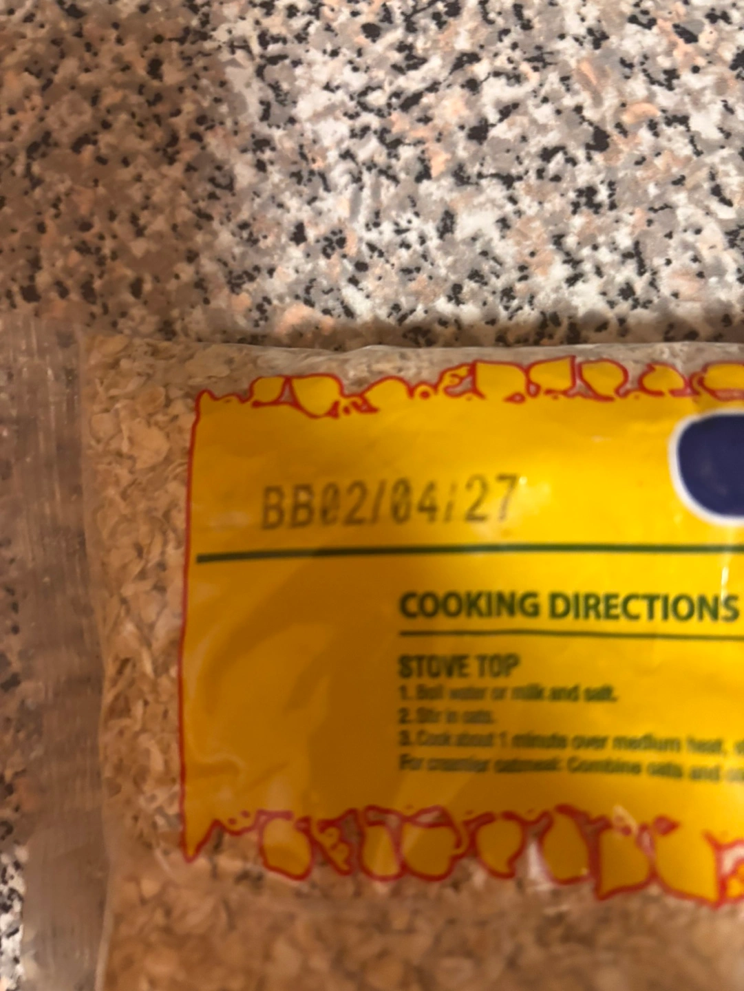 1000+Bag of quick oats. Cooking directions included. Best by 02/04/2027