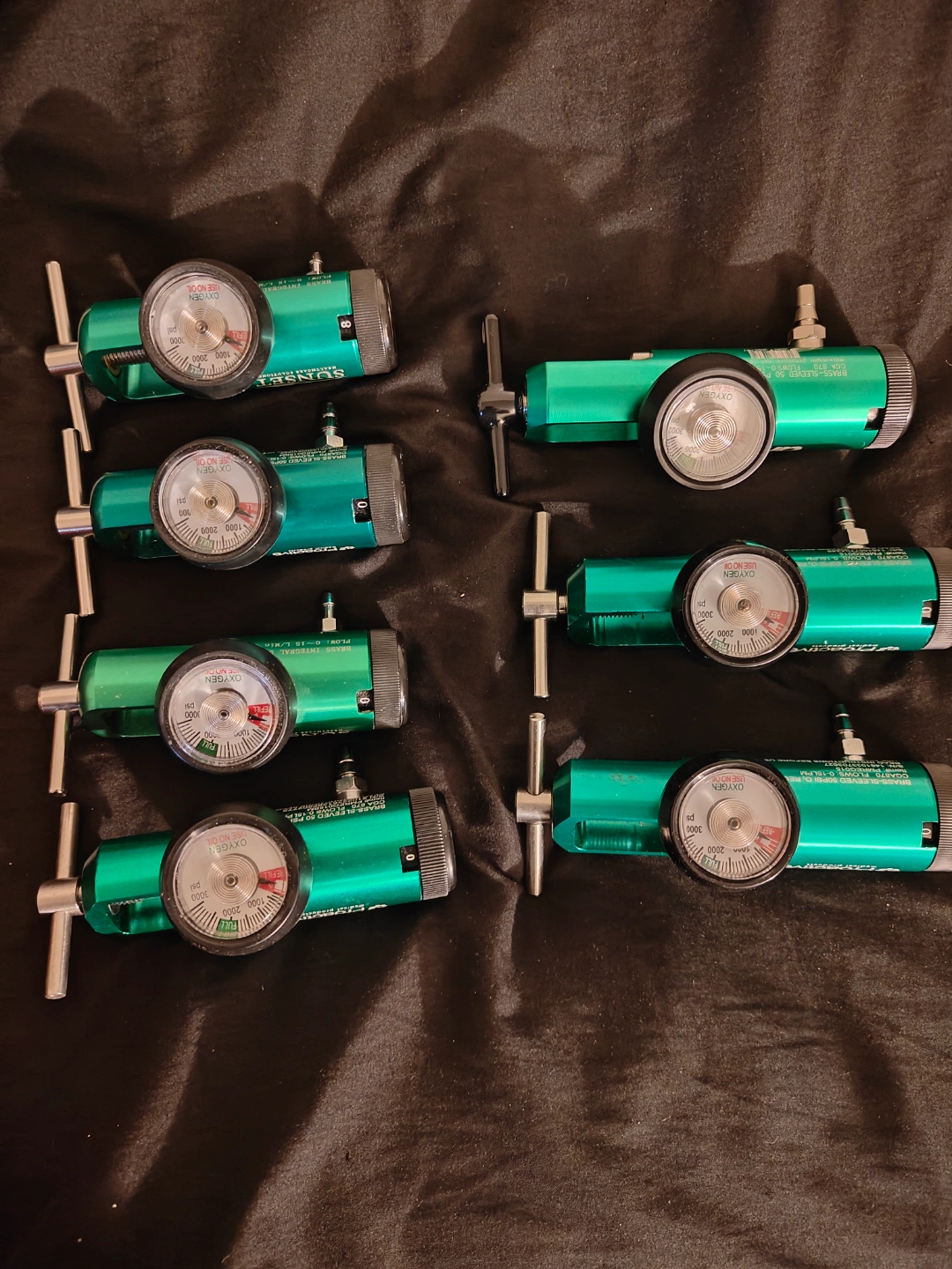 7 medical gas regulators, green. 2 Proactive and 3drive 2 Sunset Medical. HP and various PSI. like new condition