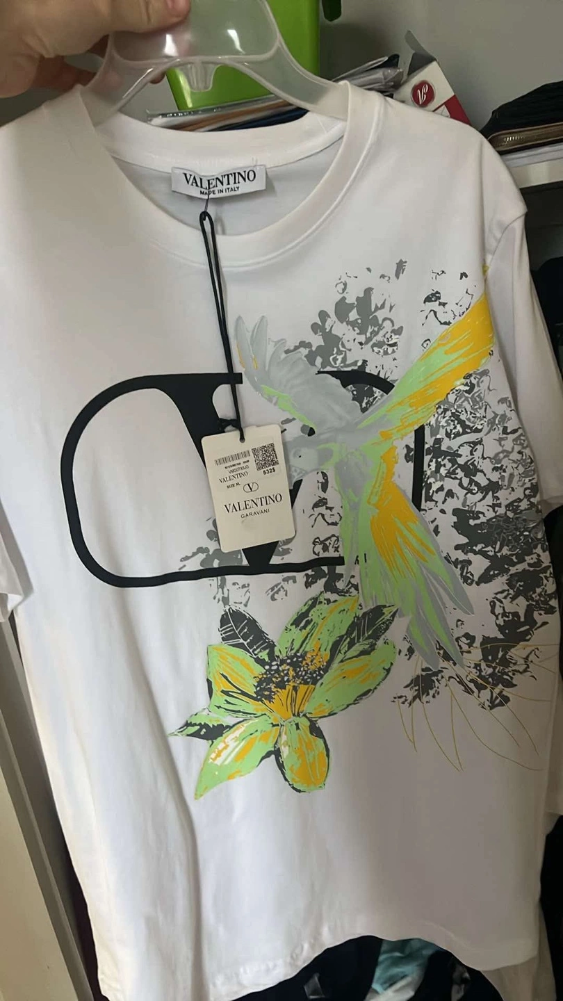 Valentino Garavani men's t-shirt. White cotton. Features a graphic design with a bird and flowers. Made in Italy.