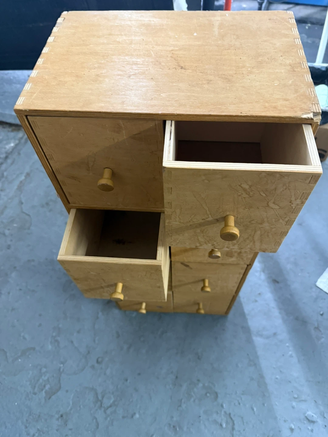 Selling a small wooden piece with 8 drawers. It's perfect for organizing items. is in good condition and ready for a new home!