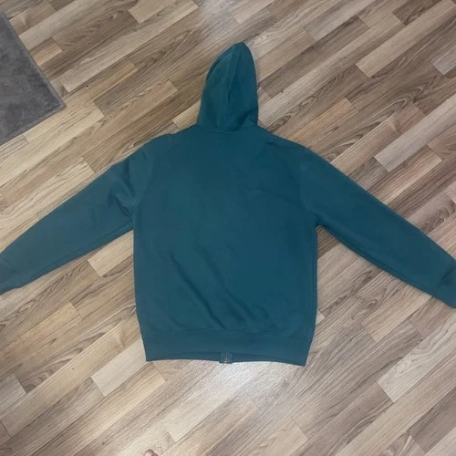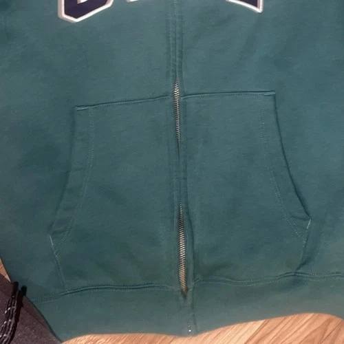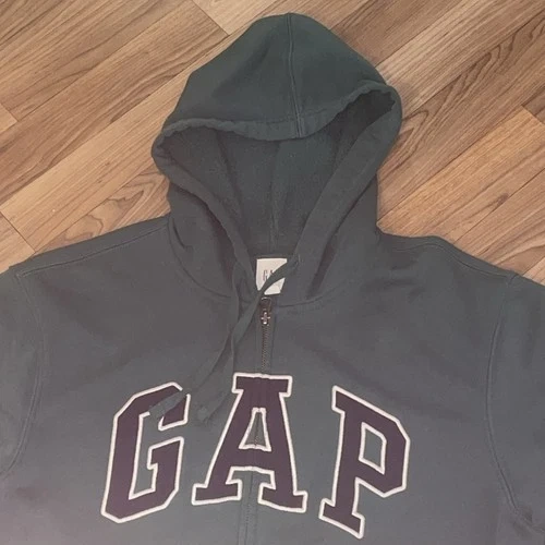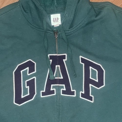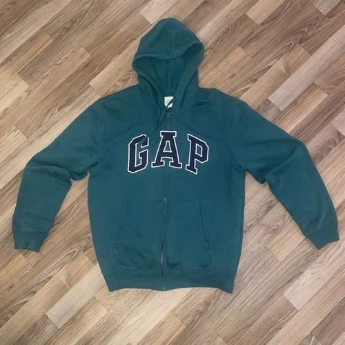 This is a classic green hoodie from The Gap, made from a blend of polyester and cotton. It offers a comfortable, regular fit and features a full zip closure. It's machine washable for easy care. The Gap brand ensures quality and style, making it a versatile piece for any casual outfit.