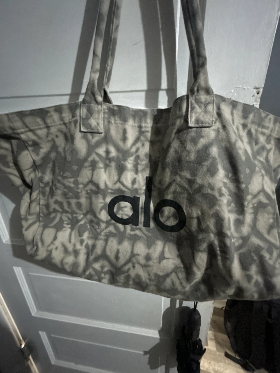Selling an Alo Yoga tote bag. It has a unique tie-dye pattern in neutral tones. Perfect for carrying your essentials to the gym or for everyday use!