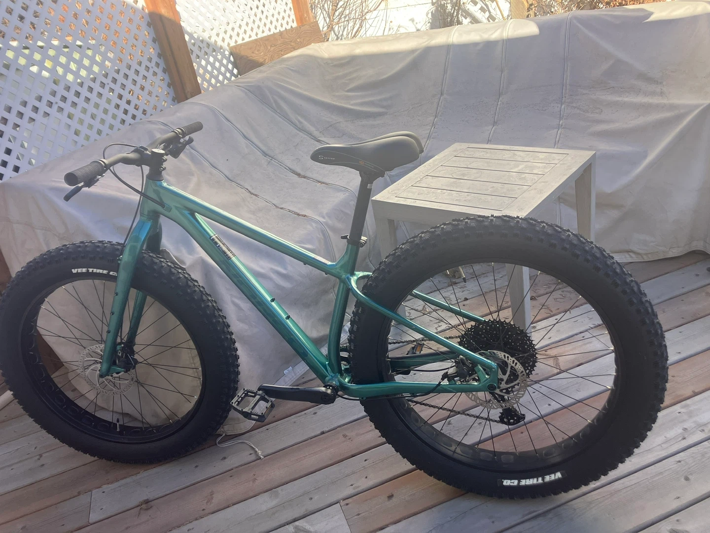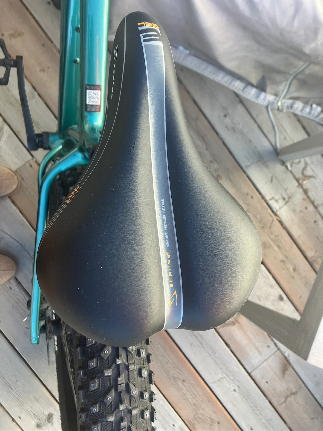 This is a teal Norco fat bike. It has Studded Kenda Juggernaut 26x4.0 tires and a Serfas H.S.S. saddle. It's ready for all-terrain adventures! I bought this bike brand new in 2024 and only used it once and it’s been sitting in the garage and I need to downsize as I’m moving. I let the AI tool formulate the post and realized that it was posted as a Kona brand but the bike is a Norco. I’m open to reasonable offers. I’ve included a hand pump and a digital air pressure gauge.