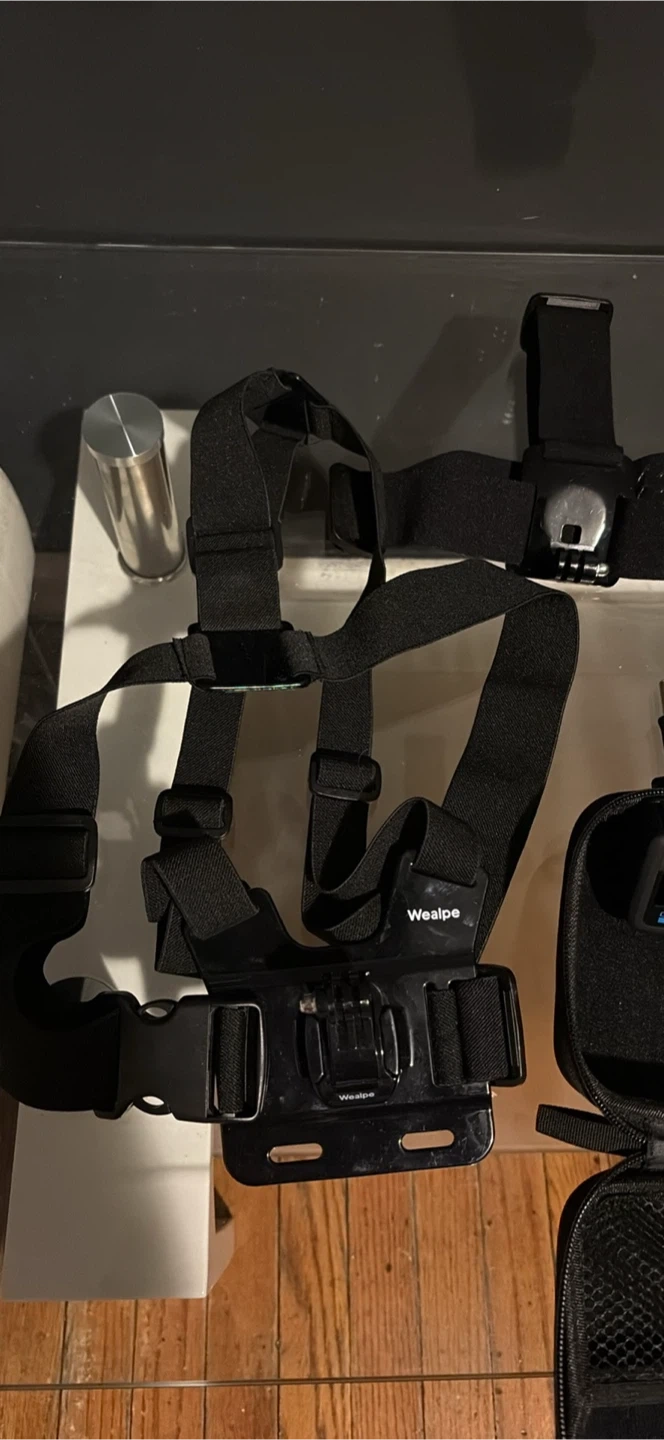( owned for a week never used ) comes with - 2 chest mount straps , 2 head mount straps , tripod , 256GB sd card , camera travel box , original go pro charger and original go pro stickers .