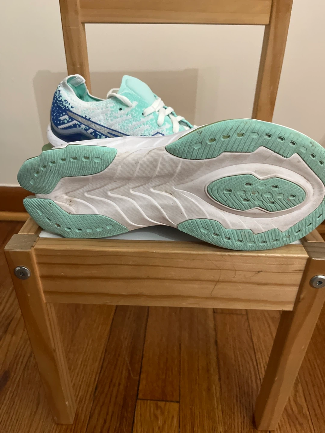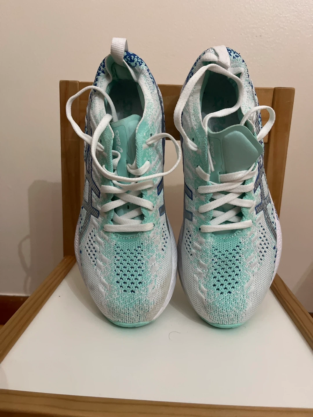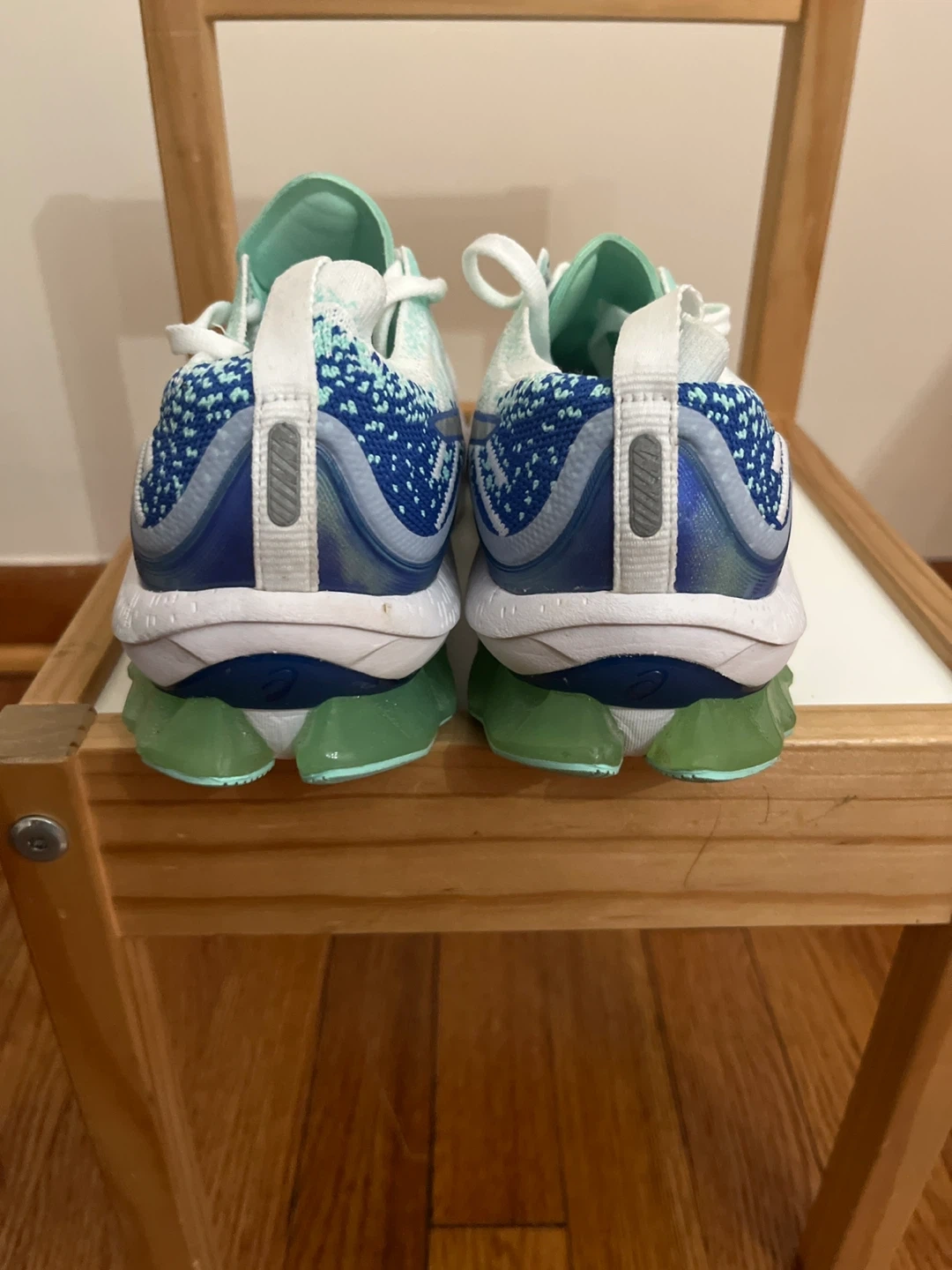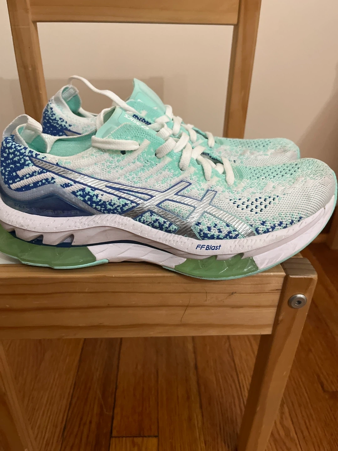 These ASICS Gel-Kayano 29 running shoes are designed for comfort and performance. They feature a lightweight knit upper in a refreshing mint blue and white colorway. The FF BLAST cushioning provides a responsive ride.