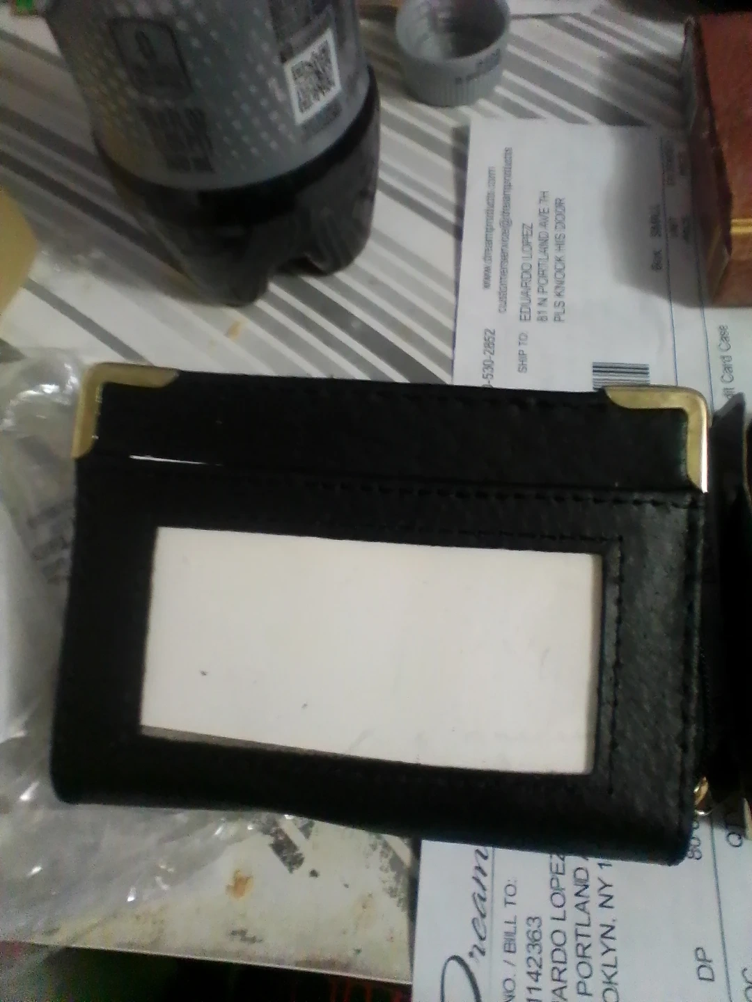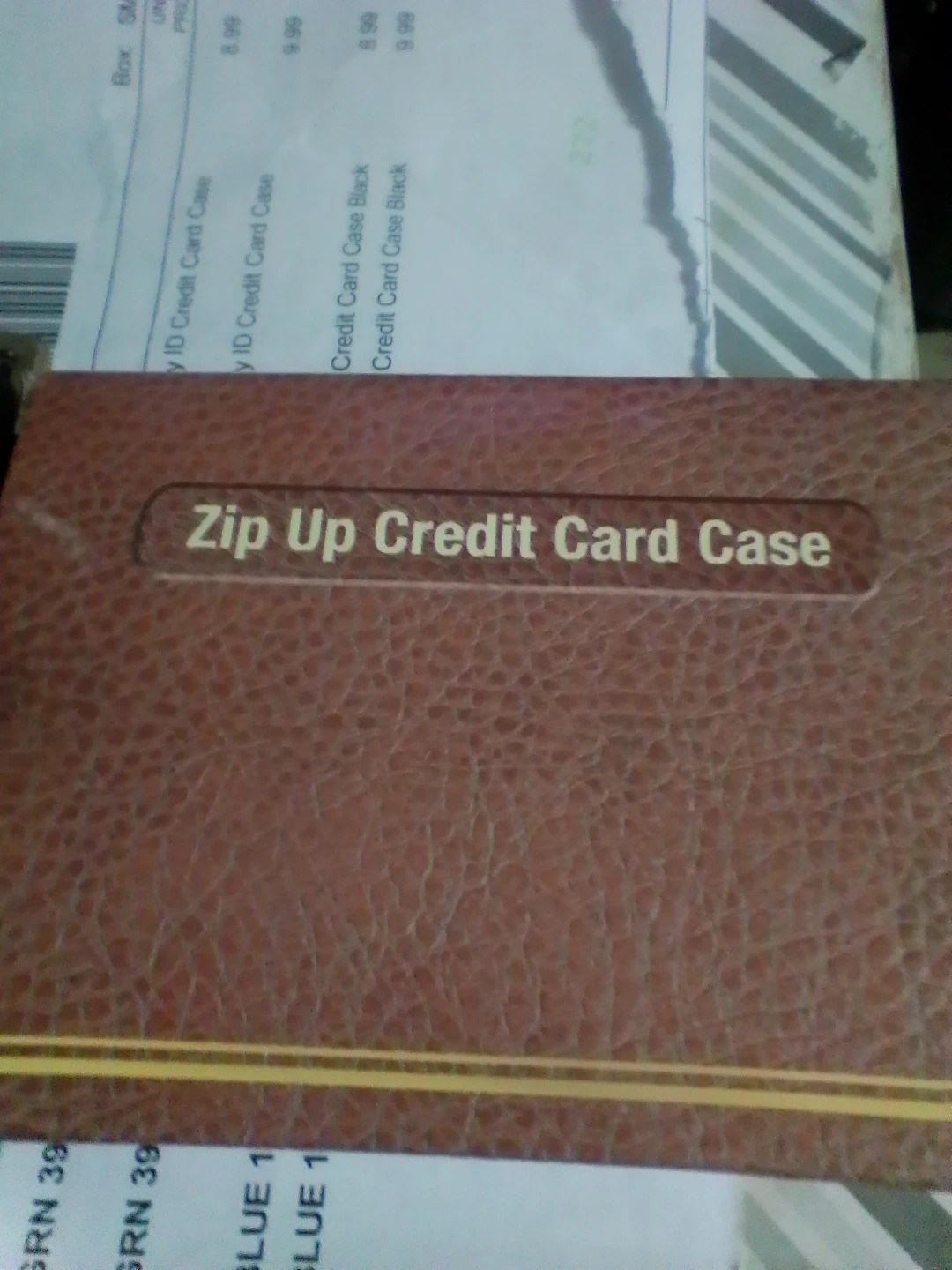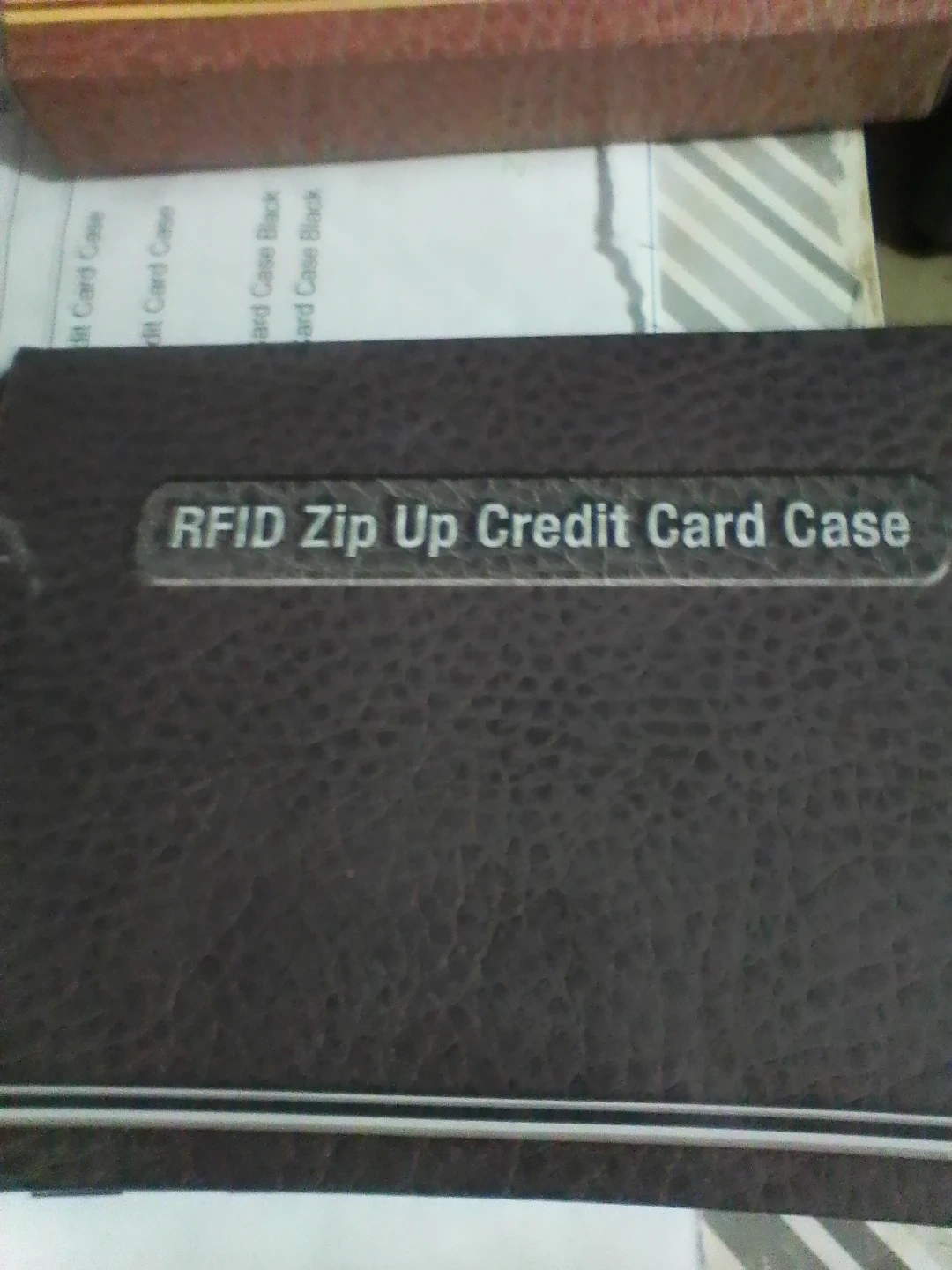 This RFID zip-up credit card case is black faux leather with gold-tone corner accents. It features a clear ID window on the front. Keeps your cards secure and organized! ASKING 20.00 DOLLARS EACH HAVE BLACK AND BROWN HAVE 12 EACH COLOR LOCATED IN BROOKLYN NY