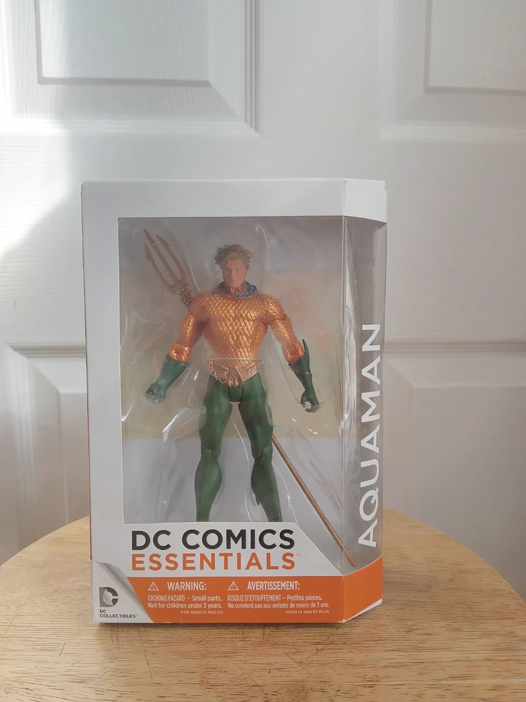 DC Comics Essentials Aquaman action figure. Includes original packaging. Perfect for DC Comics collectors! Item might have some dents and tears. See picture. Sold as is