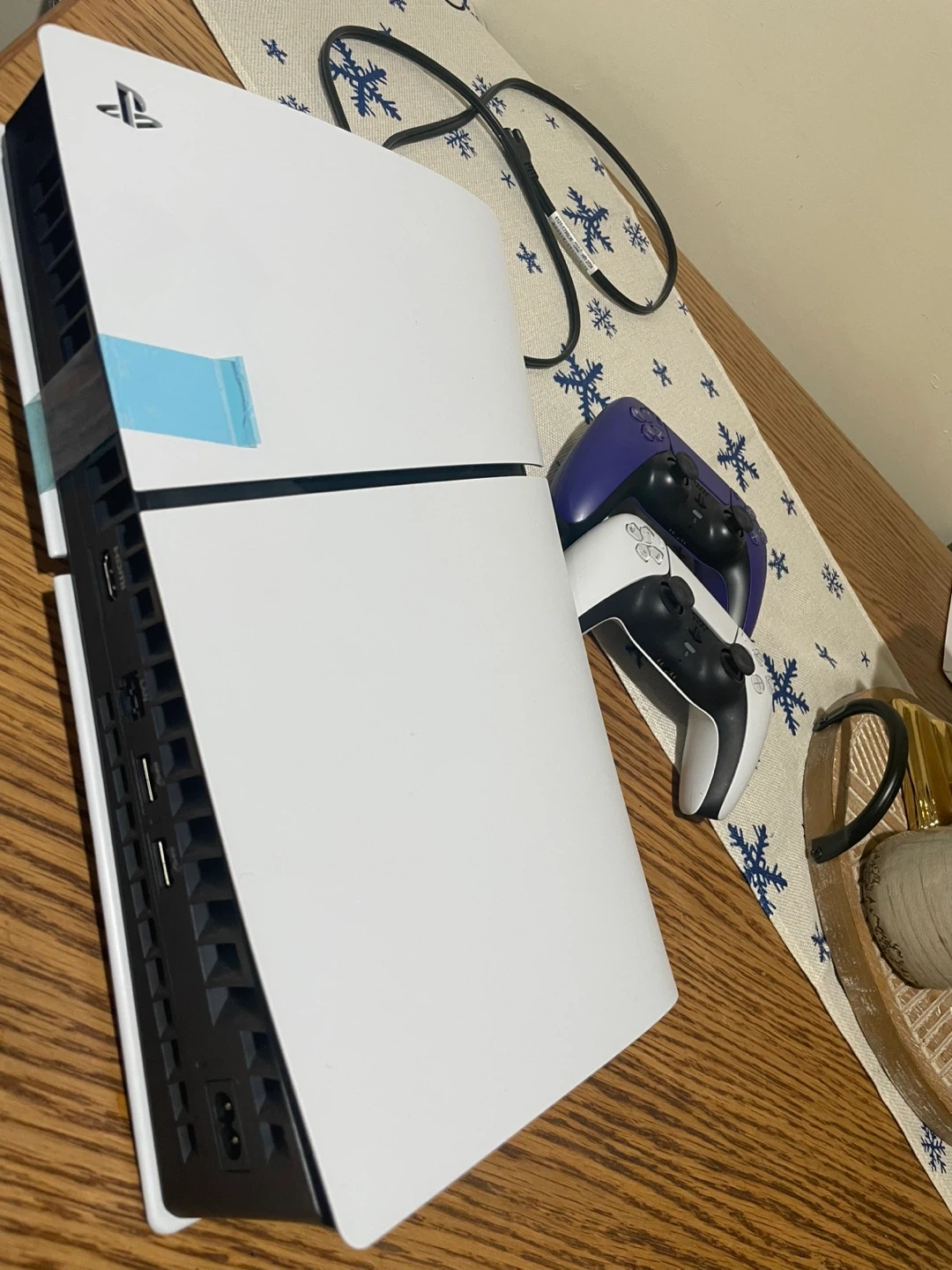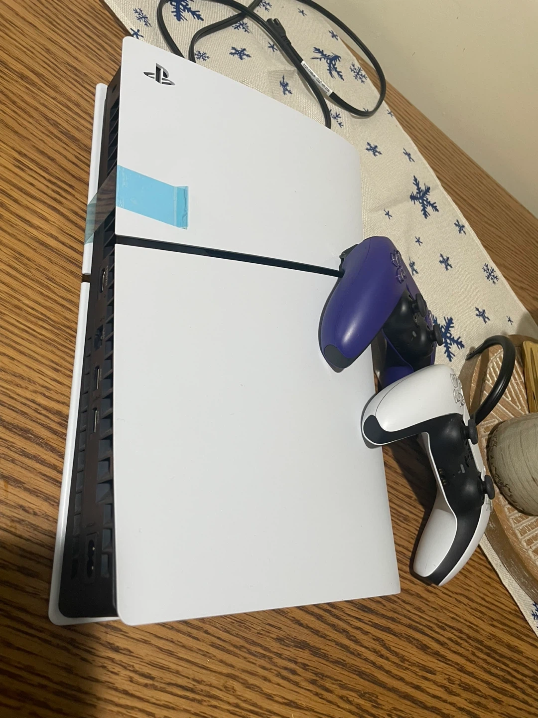 Selling a PlayStation 5 console that comes with two DualSense controllers. One controller is the standard white, and the other is a cool purple color! Great for gaming with friends or family