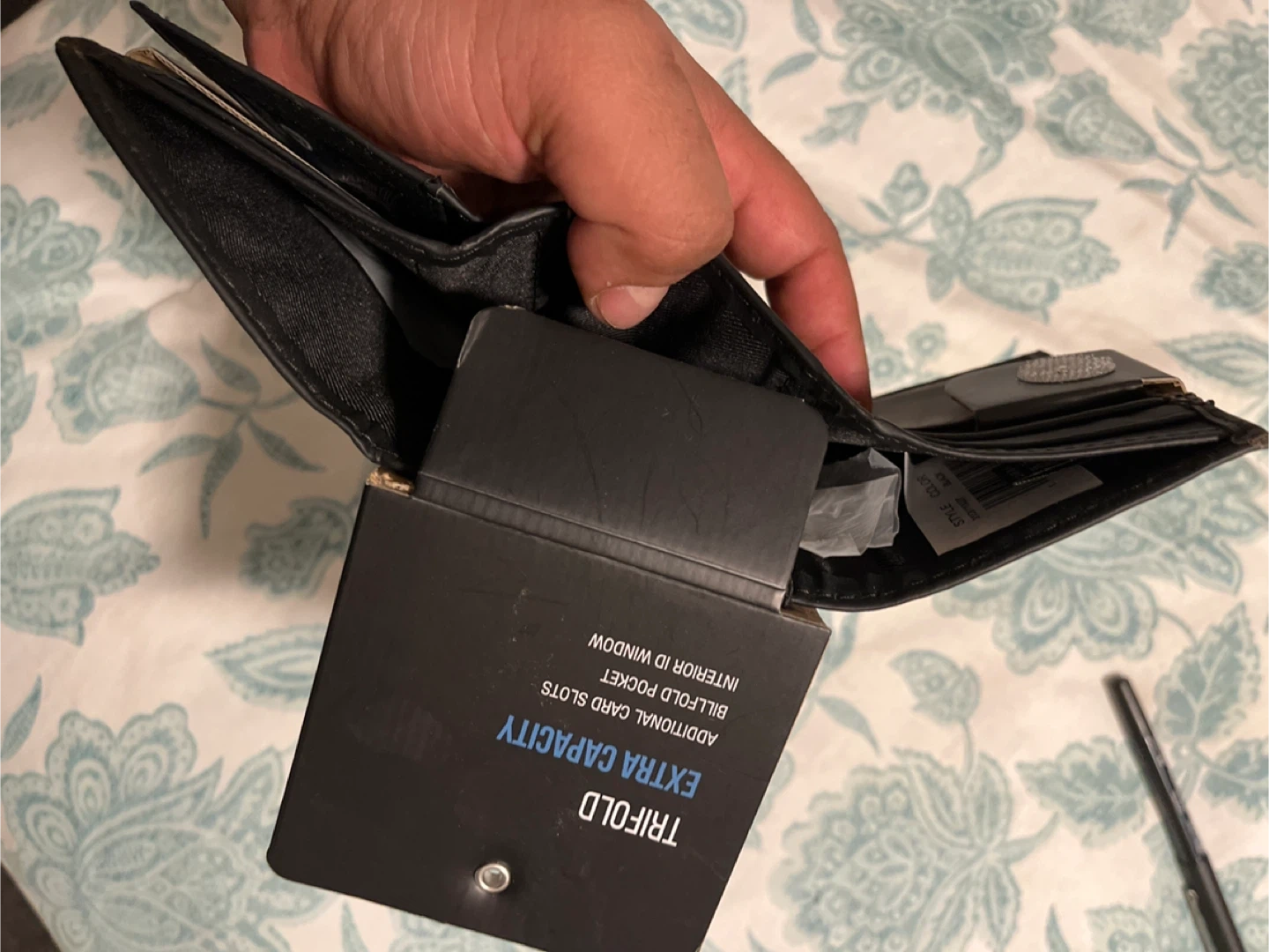 This black Dickies trifold wallet offers extra capacity with multiple card slots, a billfold pocket, and an interior ID window. It's made of durable material, perfect for everyday use. Keep your essentials organized and secure!