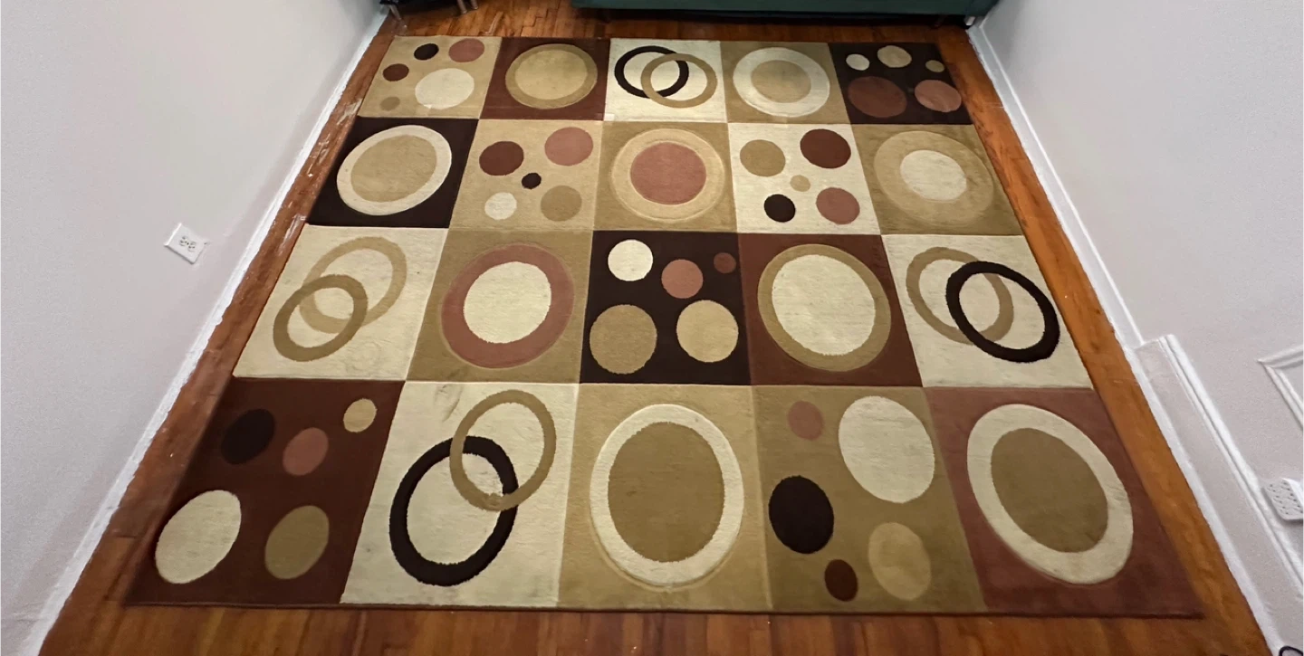 Here's a stylish area rug with a unique brown patterned design! It would be a great addition to any room. Feel free to ask any questions! 10ft length X 8ft width 118inches X 94-1/2 inches