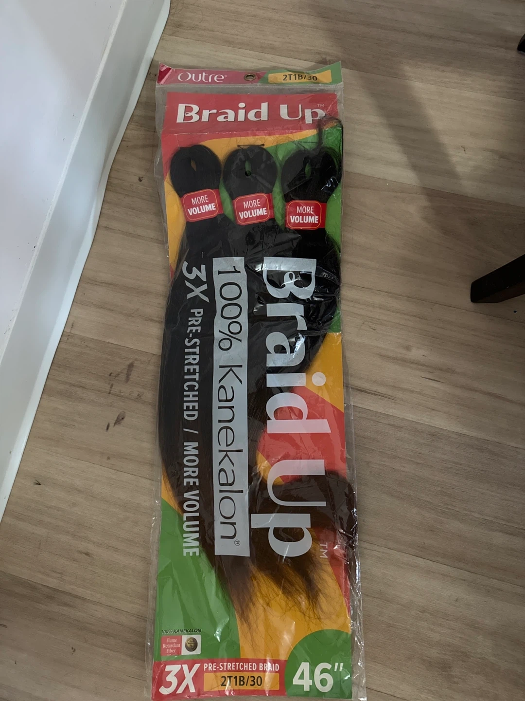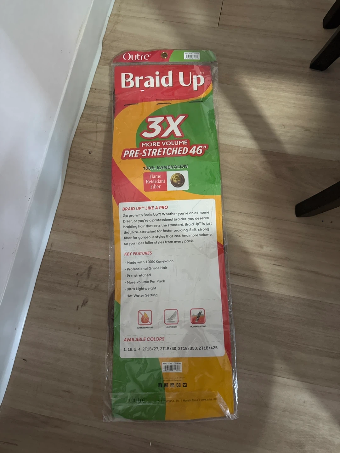 This is Outre Braid Up 3X Pre-Stretched Kanekalon braiding hair. Made with 100% Kanekalon. It's professional grade hair, pre-stretched, and ultra lightweight. Hot water setting is available. This product offers 3X more volume and is 46 inches long.