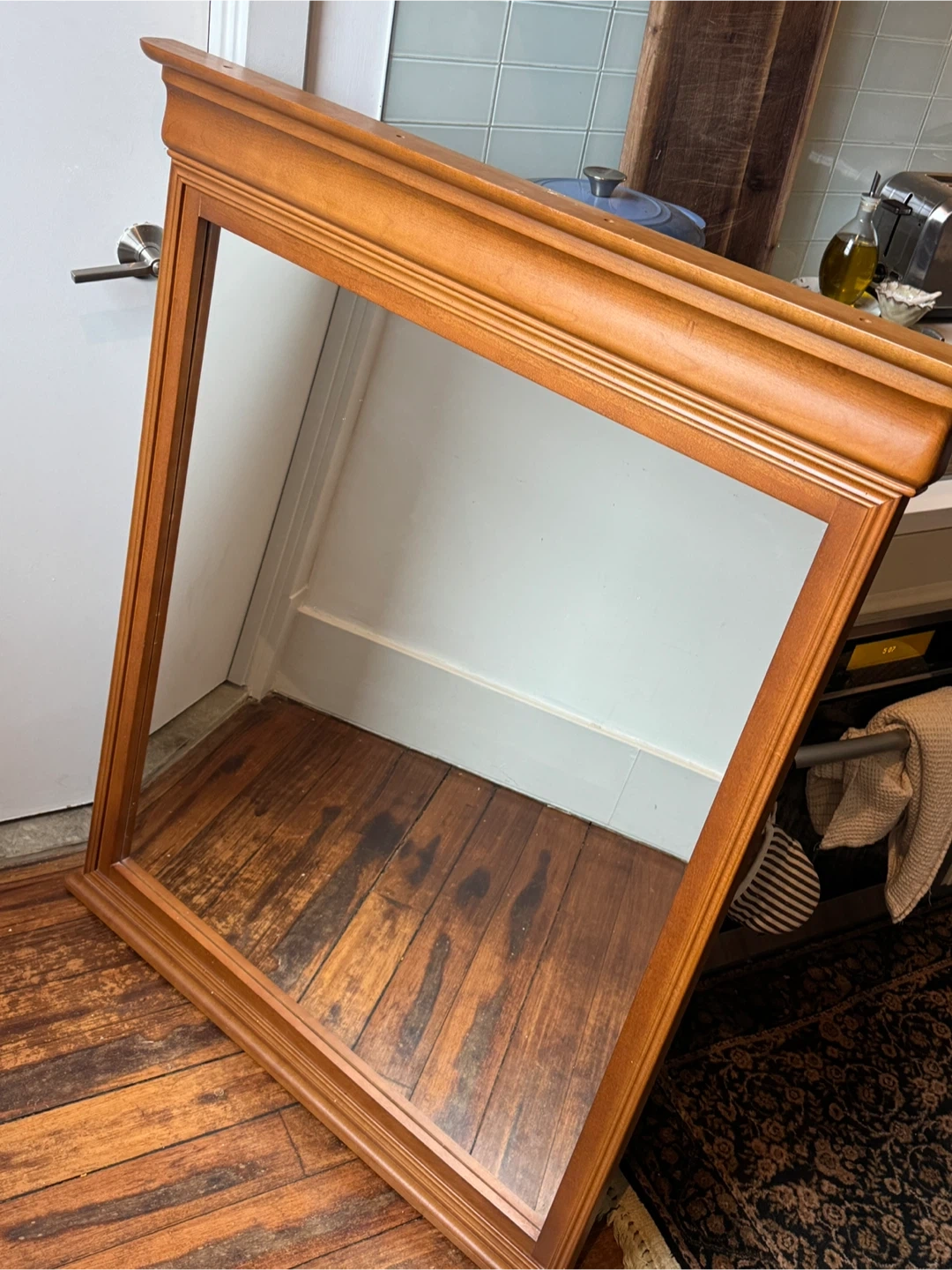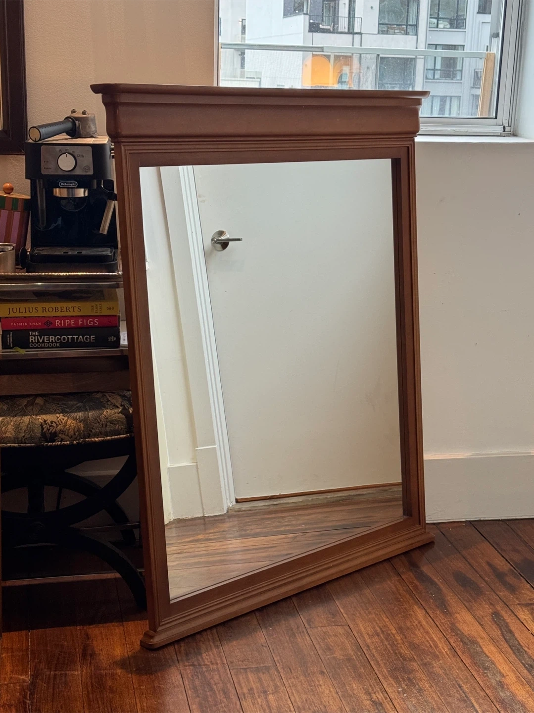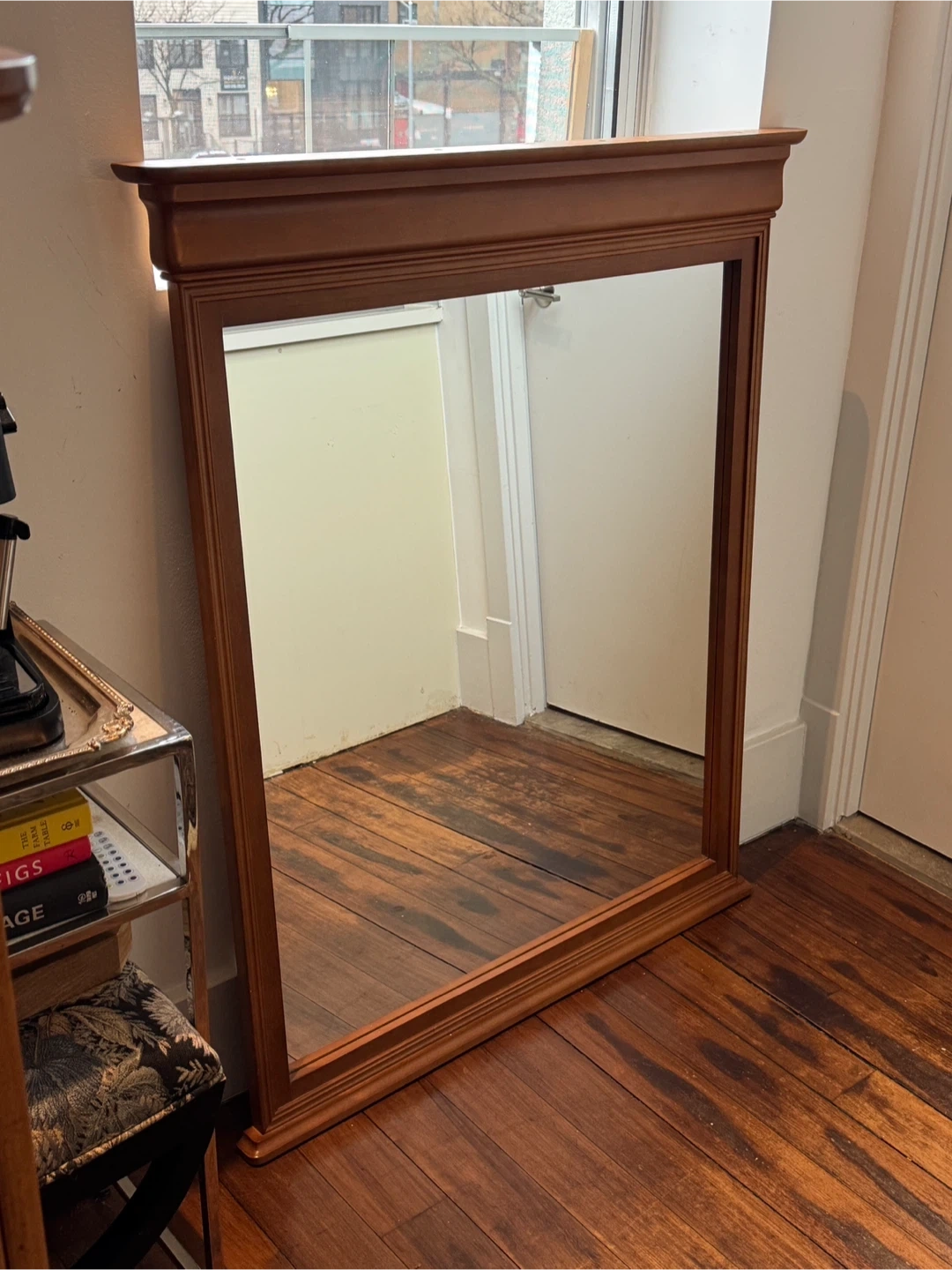 Ideal for top of dresser / entryway / vanity. Currently it doesn’t have a hanging wire, though one can easily be installed