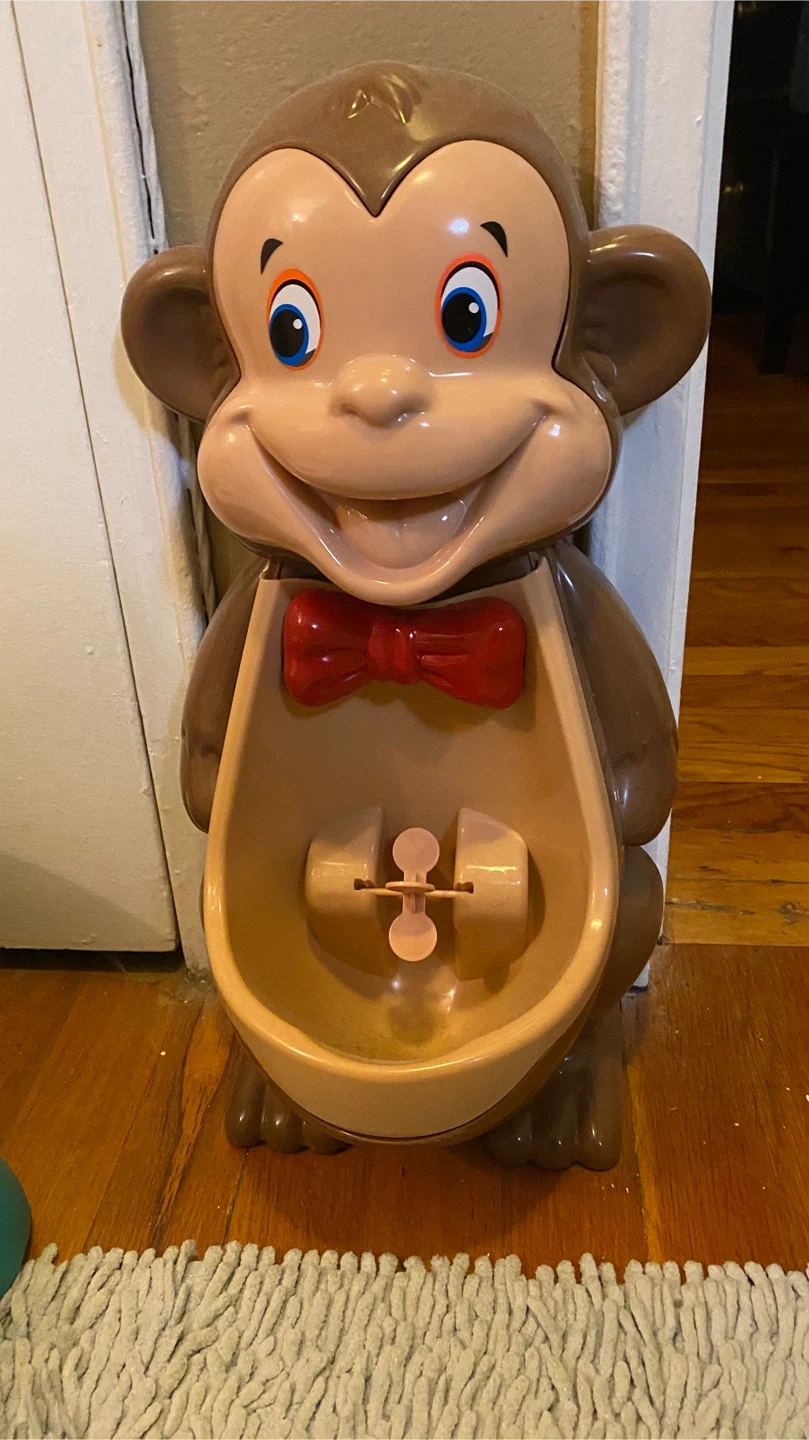 This cute monkey urinal is designed to help boys with potty training. It's made of durable plastic and features a fun, friendly design that kids will love. The removable inner container makes it easy to clean.
