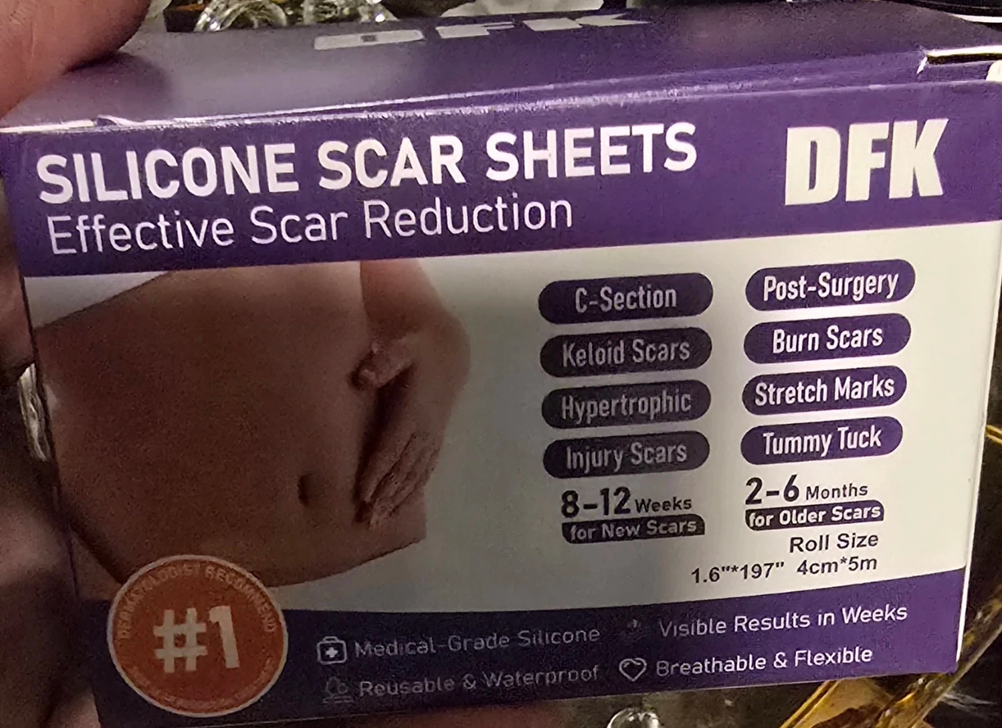 DFK Silicone Scar Sheets for effective scar reduction. Medical-grade silicone. Reusable & waterproof. Breathable & flexible. Visible results in weeks. Roll size 1.6"x197" (4cmx5m).