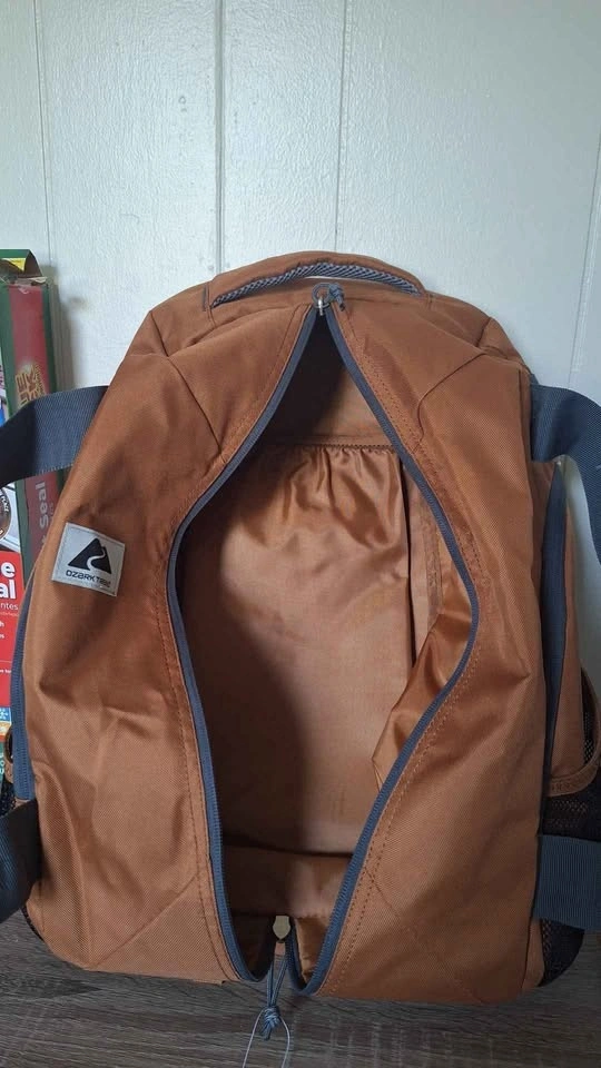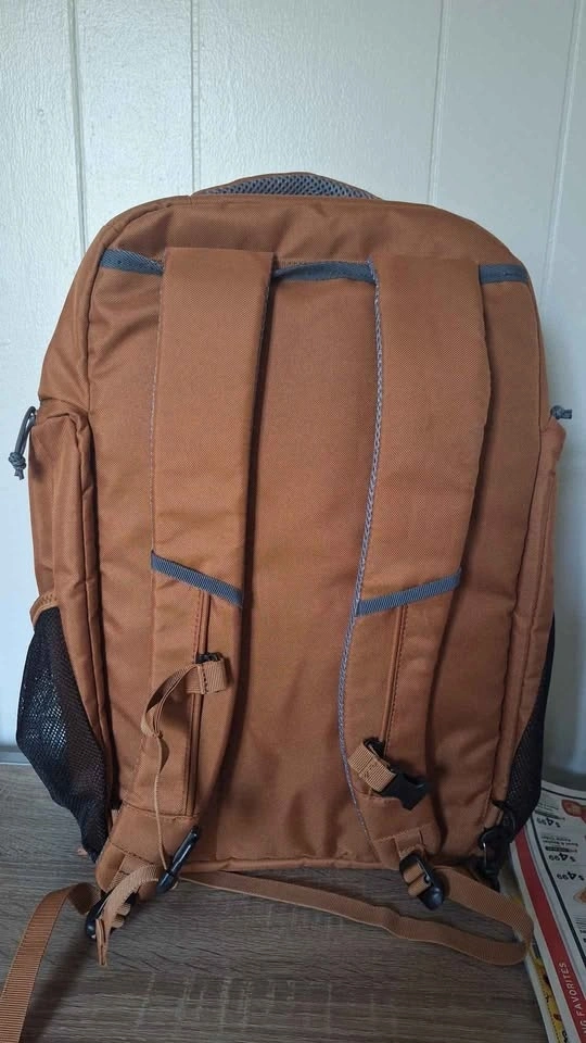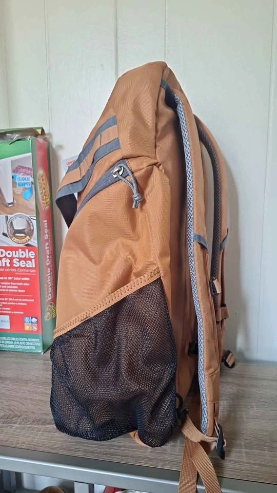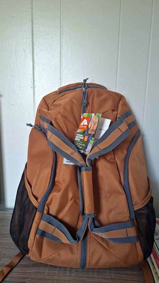 New, without receipt. XL capacity 35 liter trail backpack, gym bag, travel bag. Two zipper side compartments, two mesh side compartments, one large rubber banded separate laptop compartment within main compartment. Tuckable shoulder strap compartment. Padded back, shoulder straps and handle. Bought it when it was over $40 early year 2025. Not water proof. Pickup in Ellenville NY 12428.