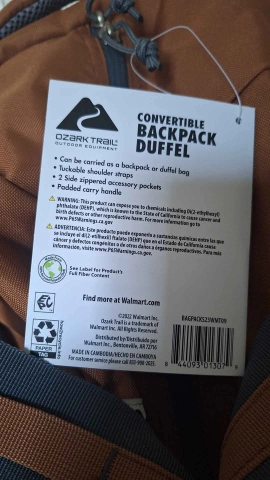 Ozark Trail Backpack Duffle 35 Liters