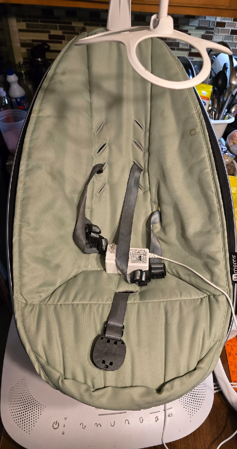 Selling a used 4moms MamaRoo baby swing. It's in good condition and comes with the power adapter. This swing is designed to mimic the natural motions parents use to comfort their babies. It features multiple motions and speeds to soothe your little one
