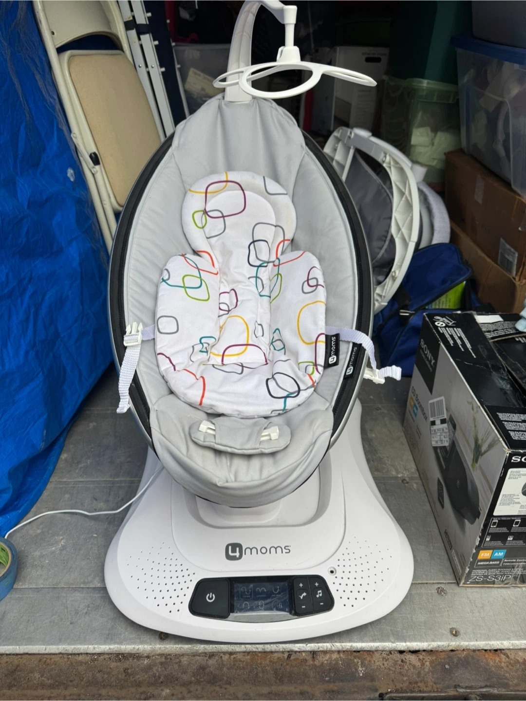 89Selling a 4moms mamaRoo baby swing in good condition. It has different motions and speeds to soothe your baby. The seat is a light gray color with a colorful pattern. It's a great way to keep your little one entertained and comfortable! In good working condition.