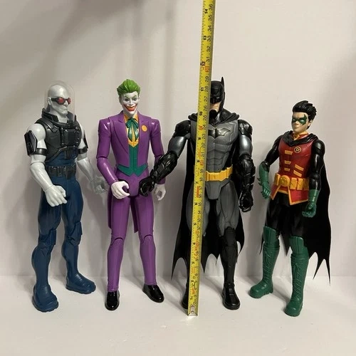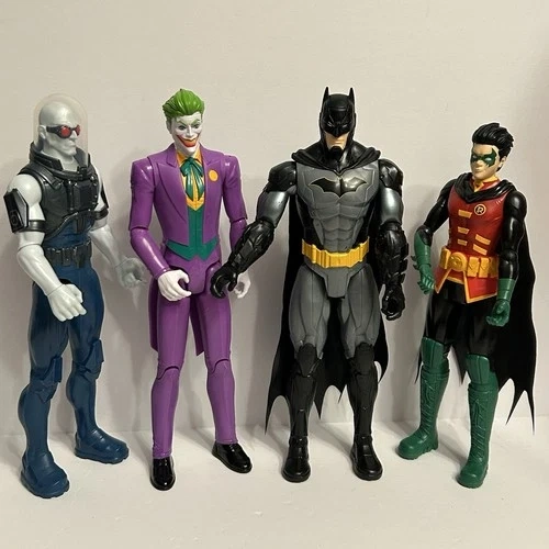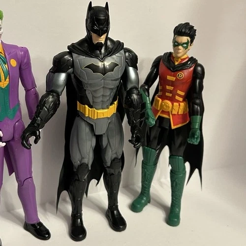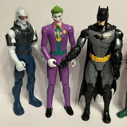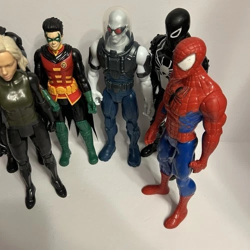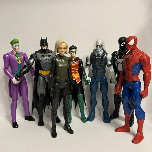 Large mixed lot of DC and Marvel action figures. Great for collectors, kids, or resale. Includes: Joker (DC), Batman (DC), Robin (DC), Female figure (appears Marvel / Black Widow–style), Mr. Freeze (DC), Spider-Man (Marvel), Black Suit Spider-Man / Venom-style figure. Lot of 7 action figures, approx. 10–12 inches tall each. Pre-owned, good overall condition with some minor scuffs or paint wear from play/display. No original packaging. See photos for exact condition and details. Sold as a lot only.