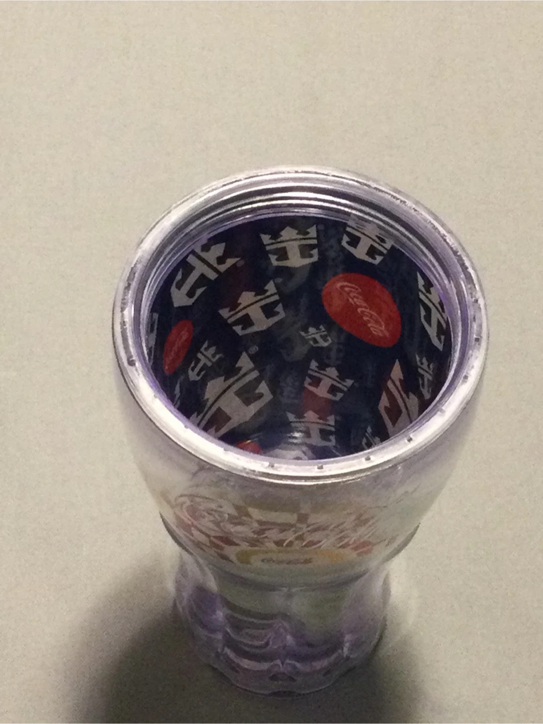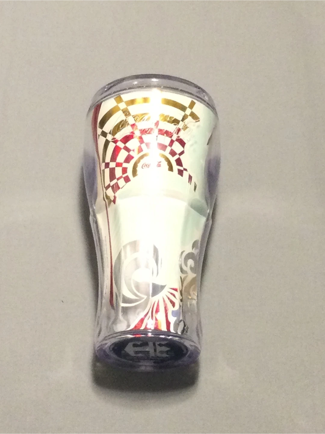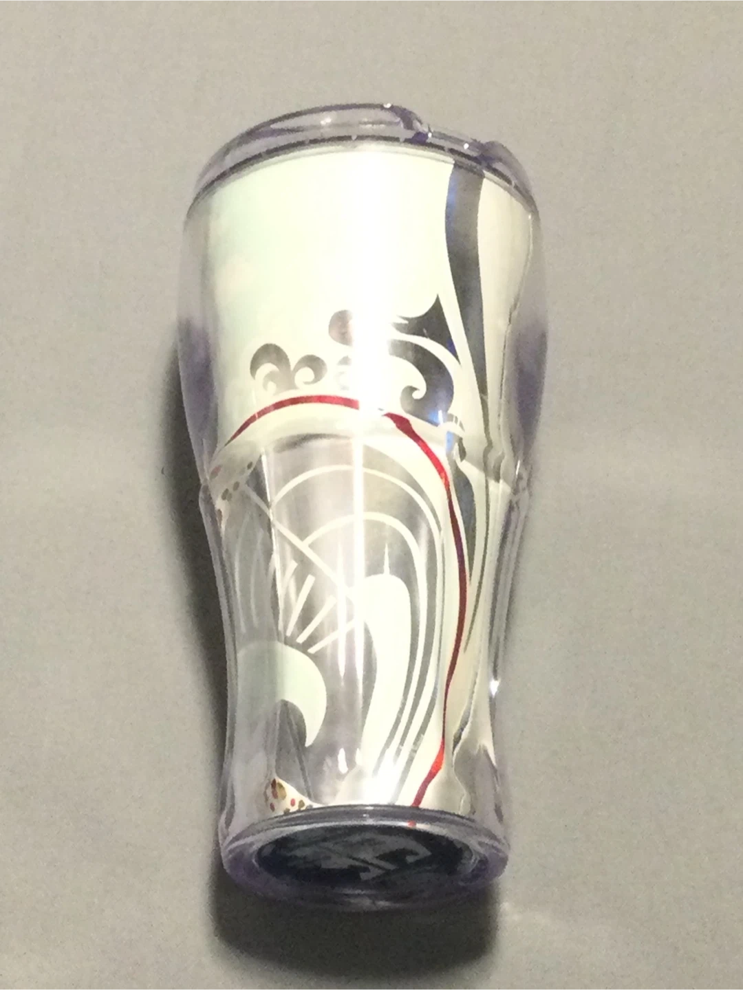 This reusable tumbler features a Coca-Cola design. It's made of durable plastic with a secure lid. Perfect for enjoying your favorite beverages on the go!