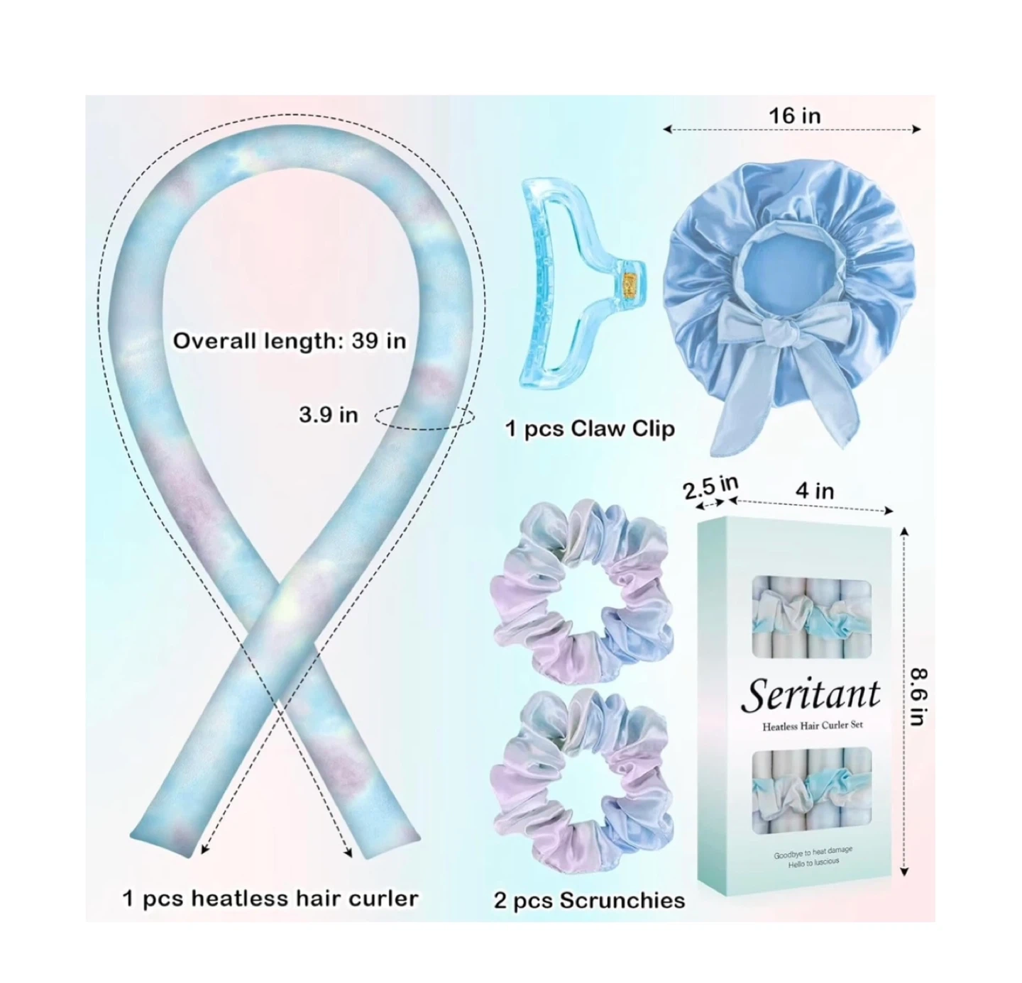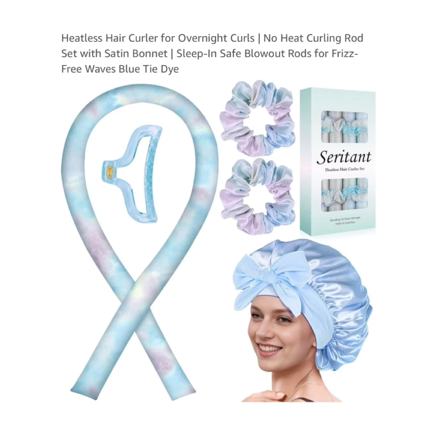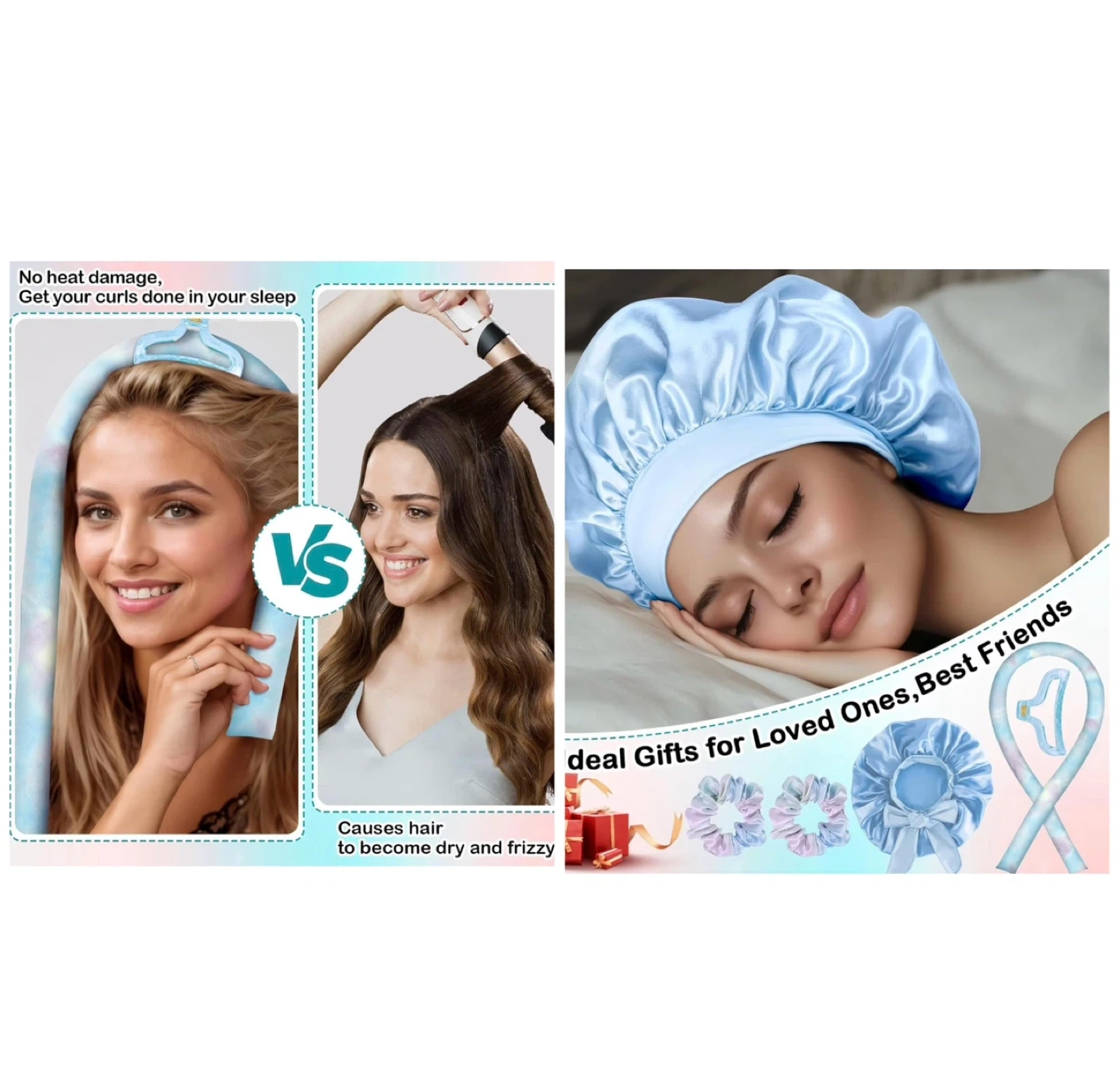 Brand new Heatless Hair Curler for Overnight Curls | No Heat Curling Rod Set with Satin Bonnet | Sleep-In Safe Blowout Rods for Frizz-Free Waves Blue Tie Dye