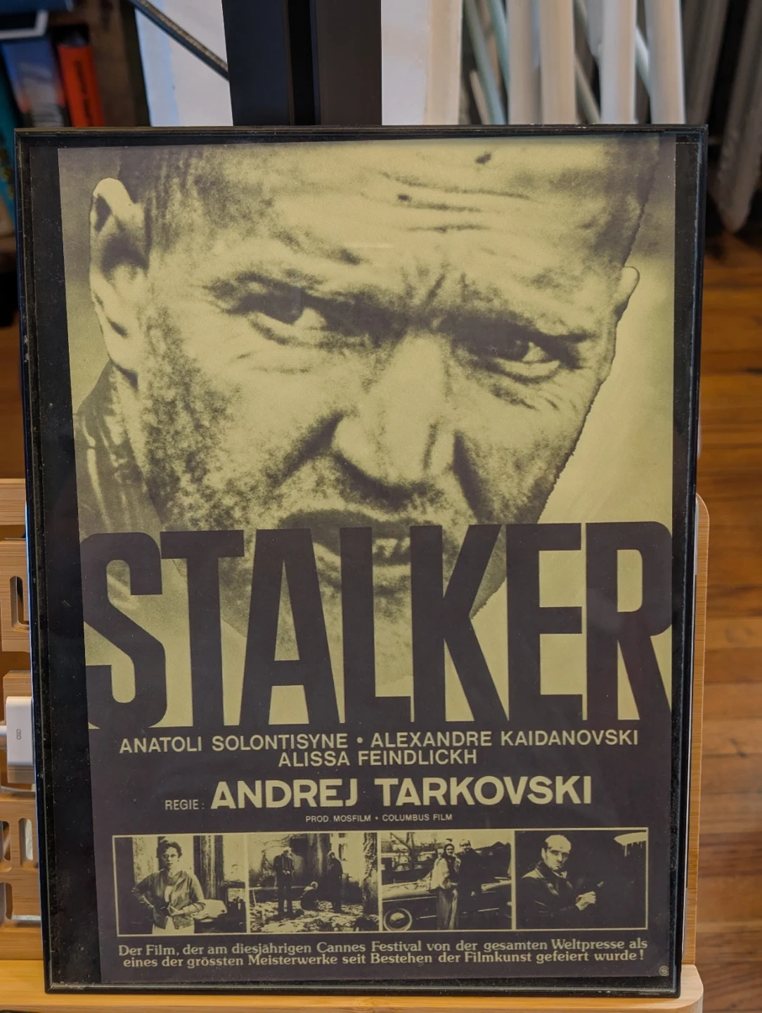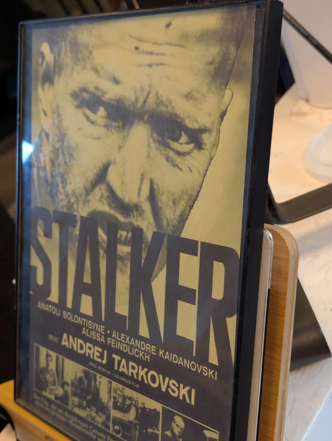 Selling a framed movie poster for Andrei Tarkovsky's film, Stalker. It features Anatoli Solonitsyn and Alexandre Kaidanovski. A great piece for any film enthusiast!