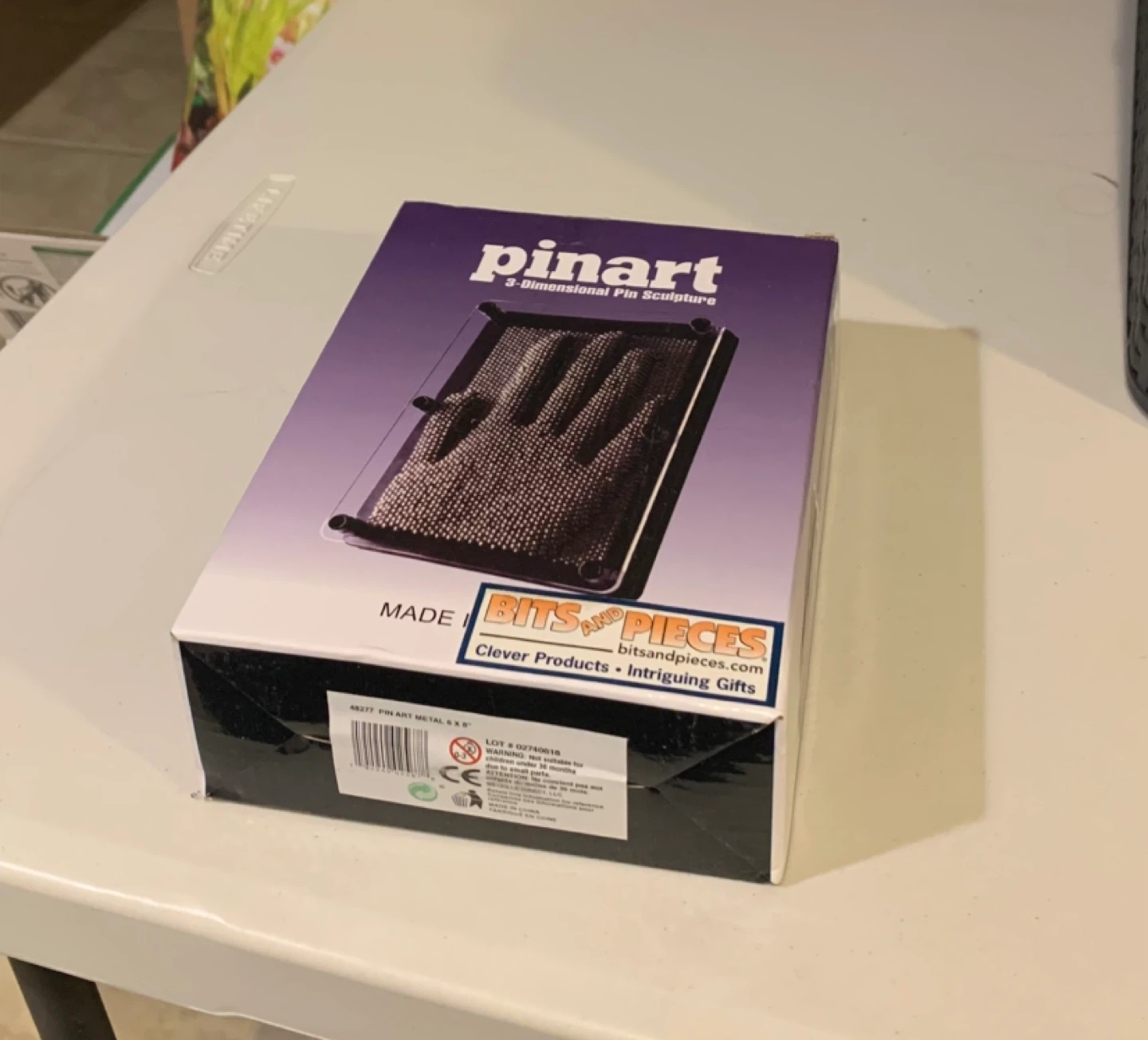This is a Pin Art 3-Dimensional Pin Sculpture. It's a metal pin art toy. The box indicates it's made by Bits and Pieces. Use it to create cool imprints!